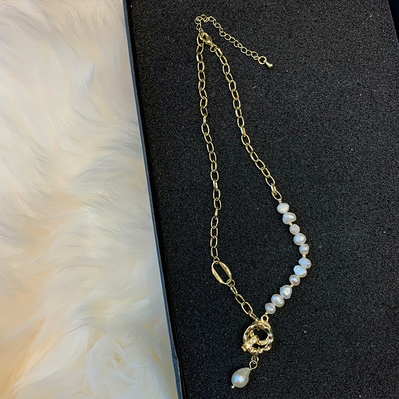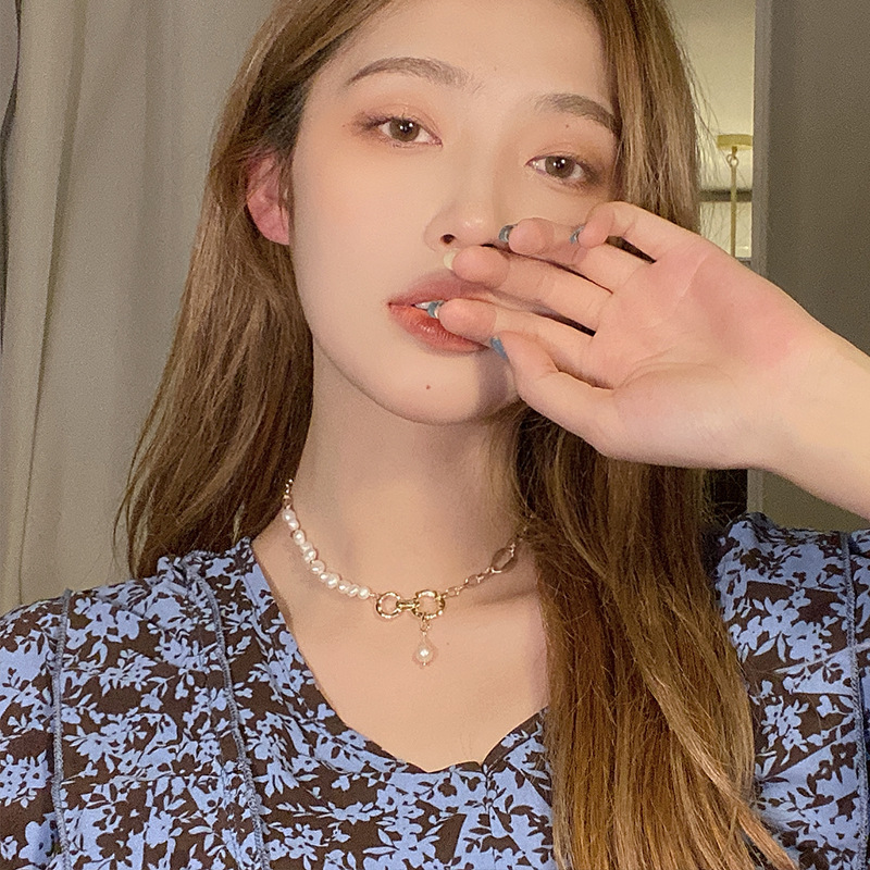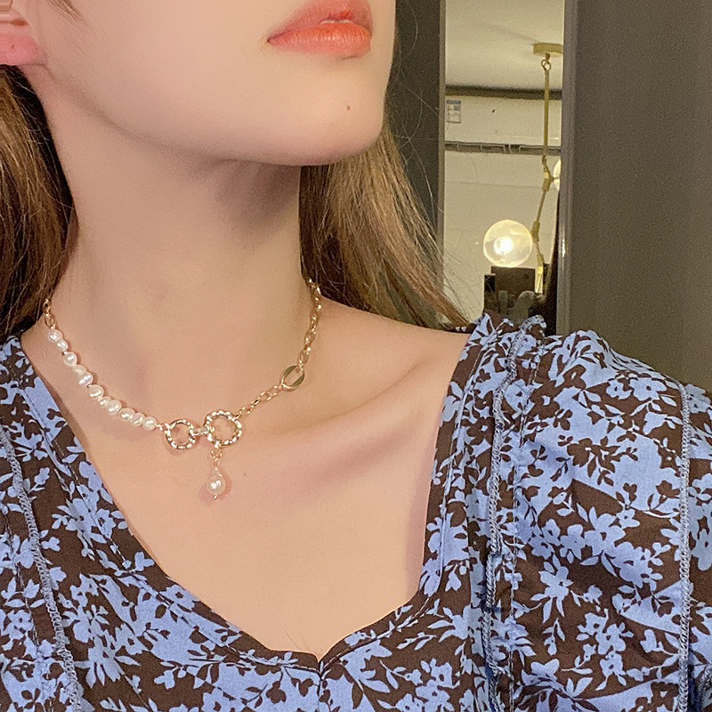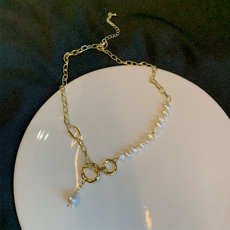 ins冷淡风个性设计异形珍珠项骨链 日韩复古气质拼接项链短款颈链