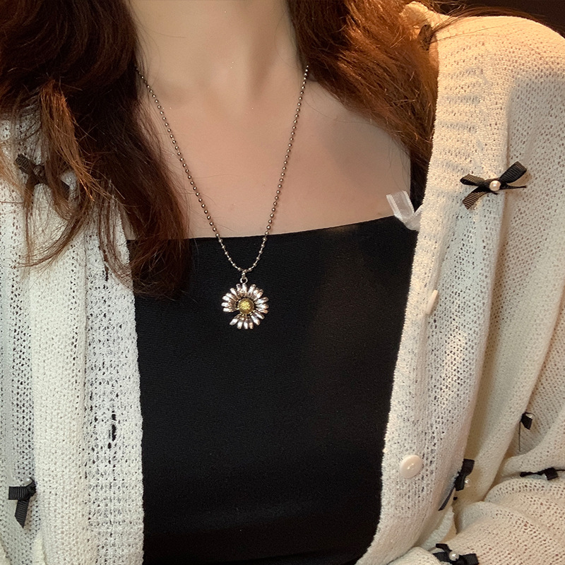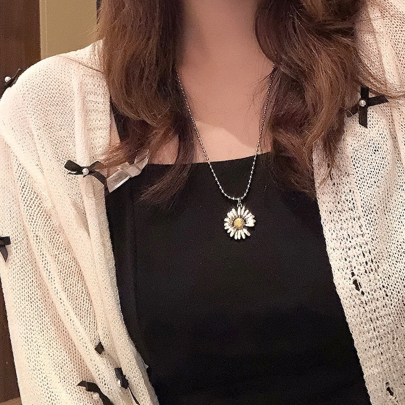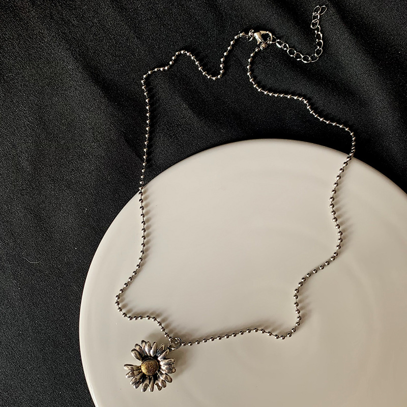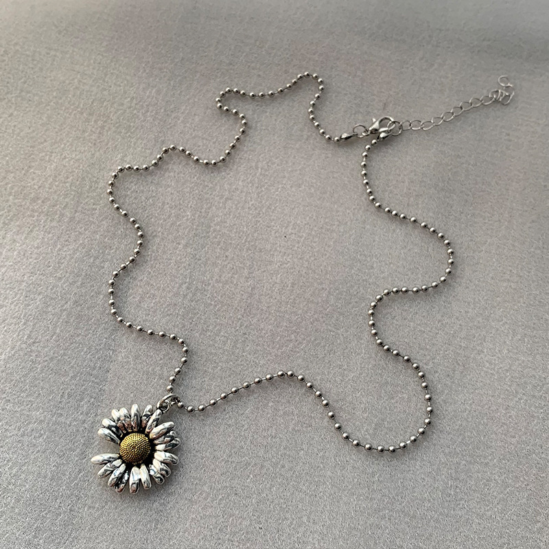 日韩复古做旧小雏菊花朵项链 ins潮嘻哈小众设计百搭毛衣卫衣链子