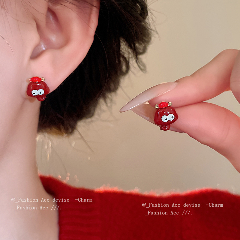 银针滴油铜钱财神小蛇耳钉女复古小众设计百搭耳环高级感气质耳饰