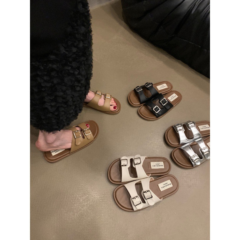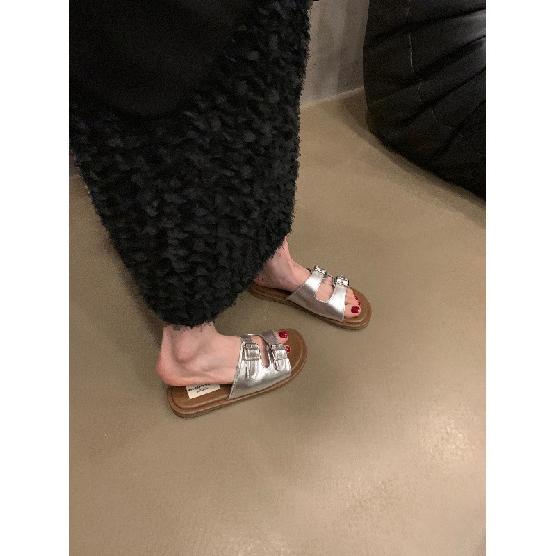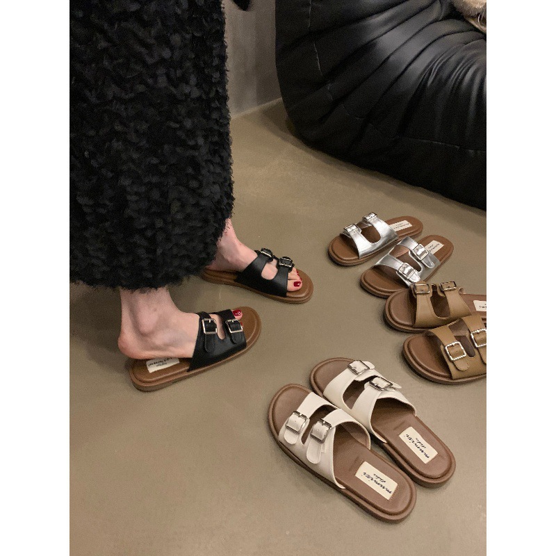 平底皮带扣拖鞋女夏季外穿年新款复古仙女风软底沙滩海边凉拖