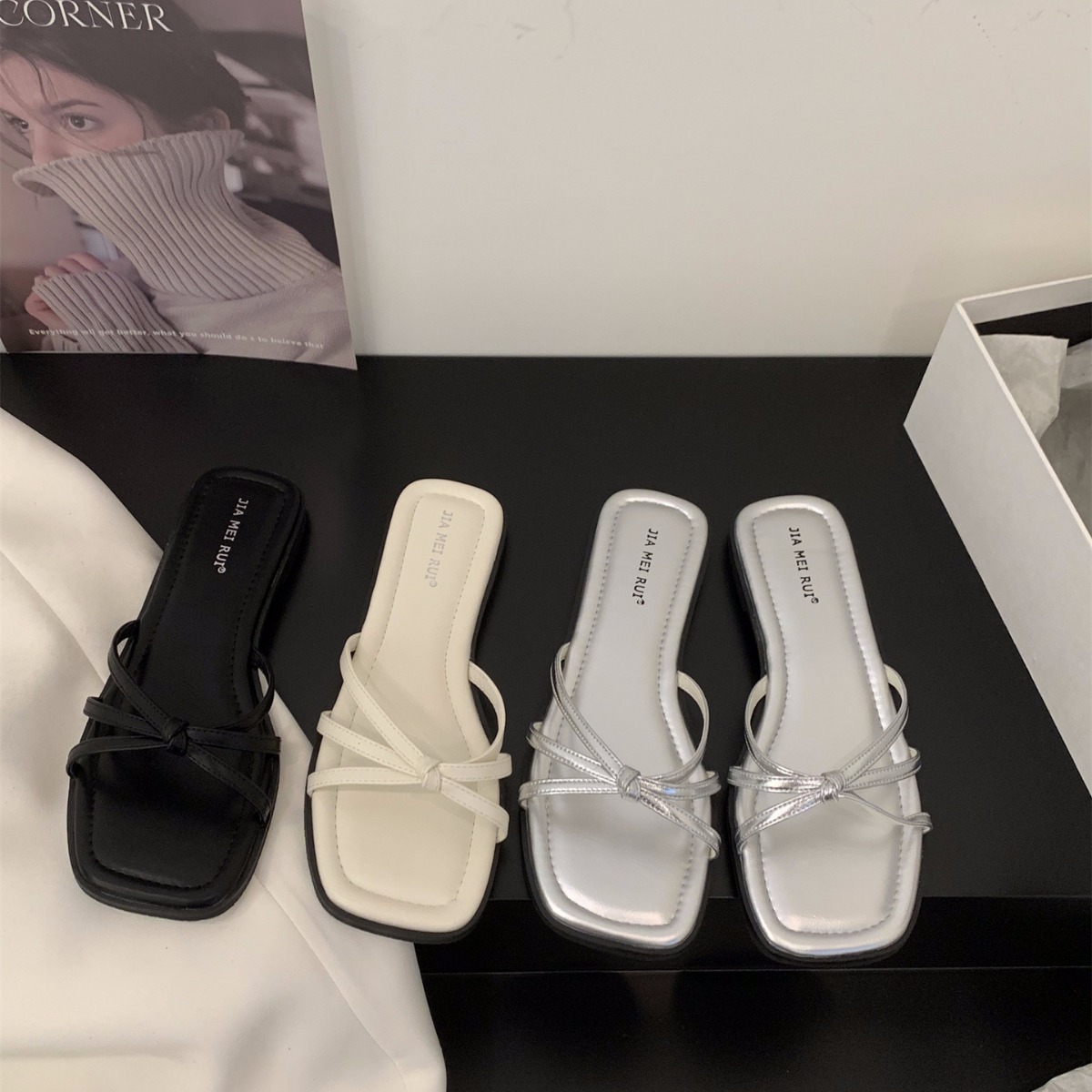 平底银色凉鞋法式小凉拖鞋仙女鞋子新款夏季时尚外穿沙滩凉拖