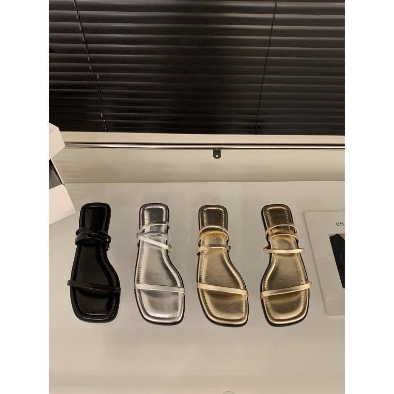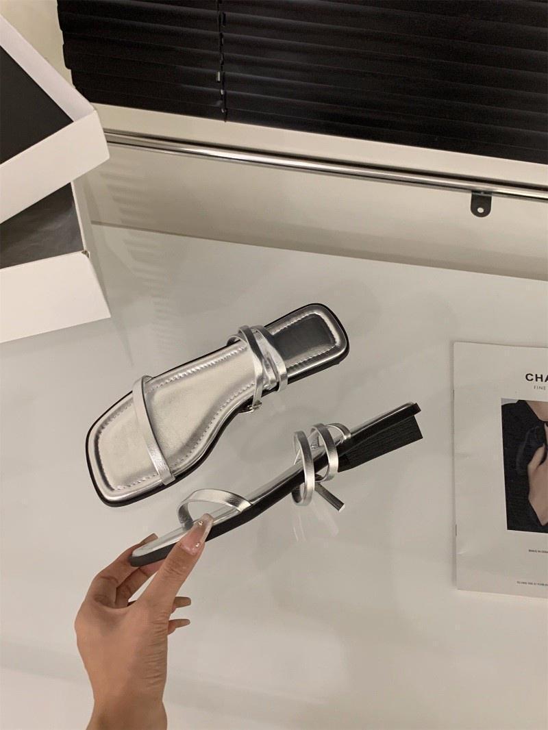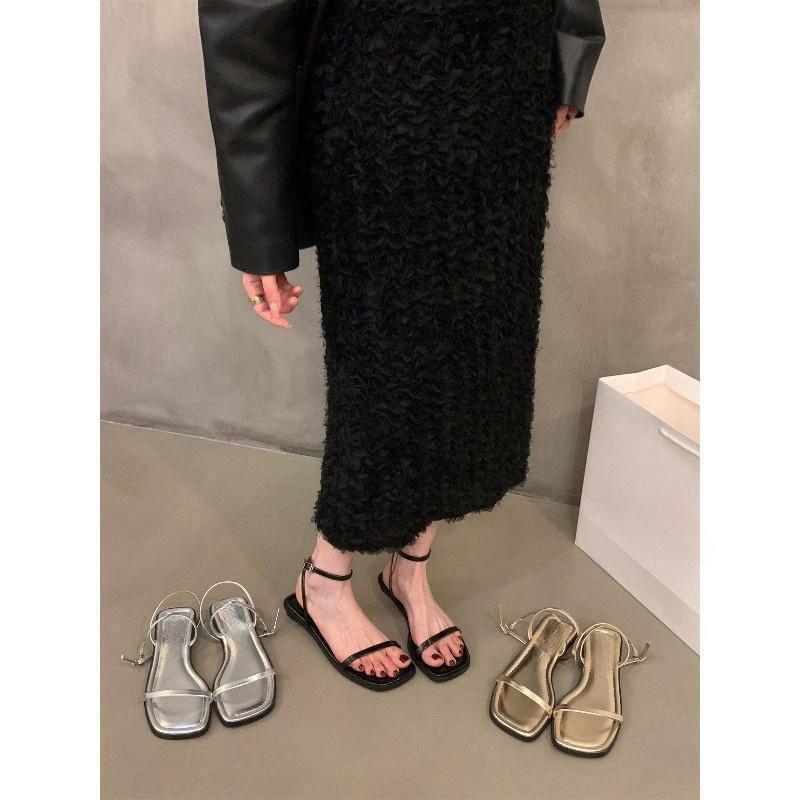 平底银色气质凉鞋仙女鞋子夏季软底配裙子度假沙滩细带罗马鞋