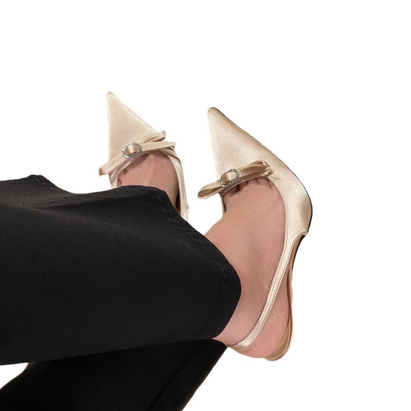 法式尖头高跟鞋女细跟气质名媛单鞋春季新款仙女风蝴蝶结包头凉鞋