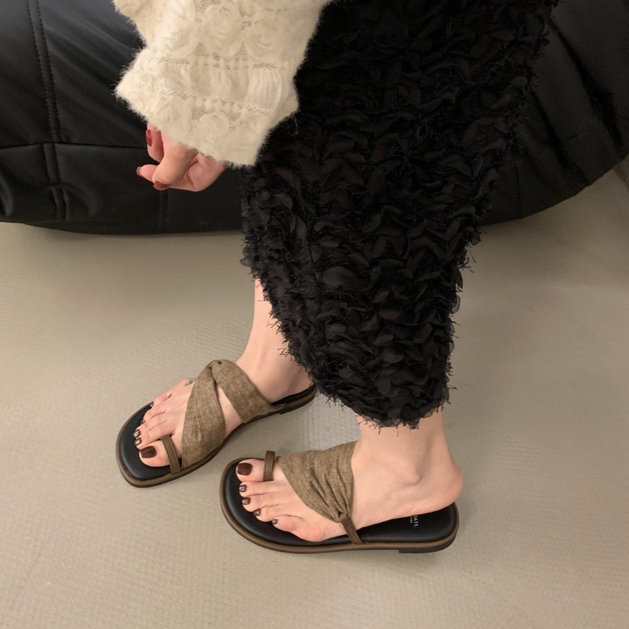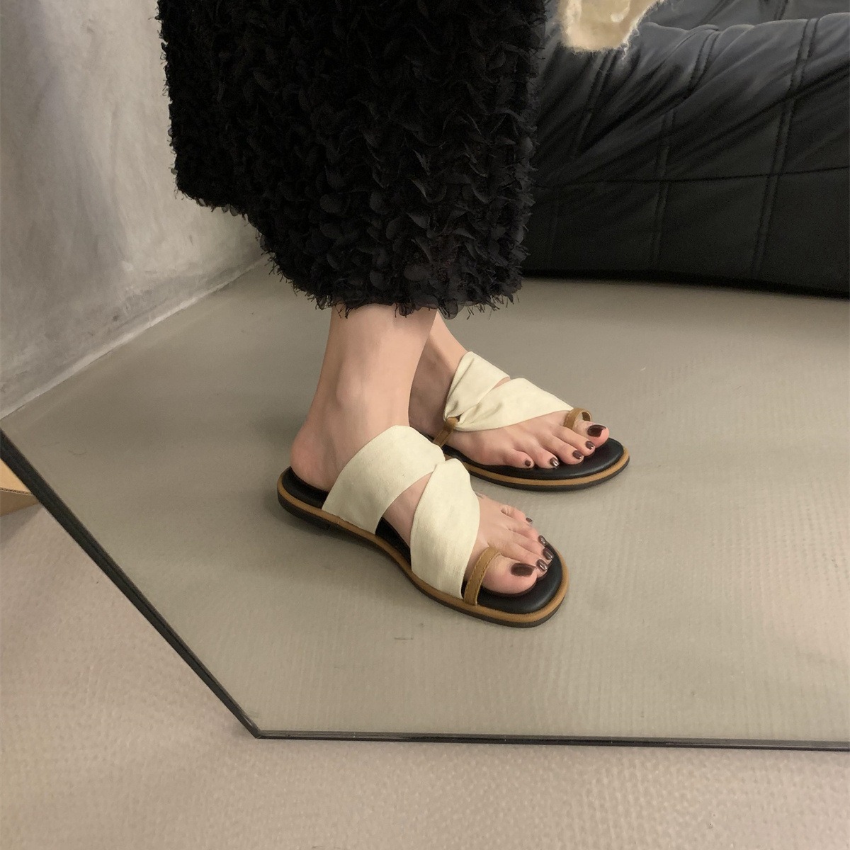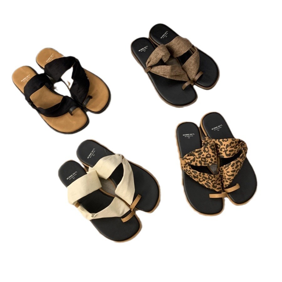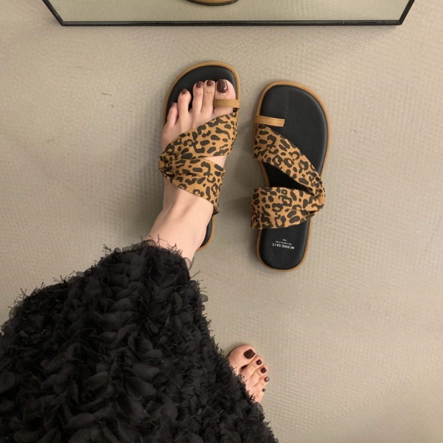 法式小众豹纹套趾拖鞋女夏外穿时尚设计感平底露趾沙滩度假凉拖鞋