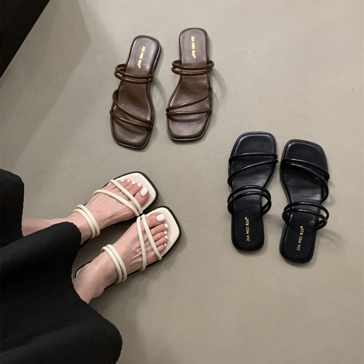 法式晚风一字拖鞋女夏季外穿年新款韩版仙女复古细带平底凉鞋