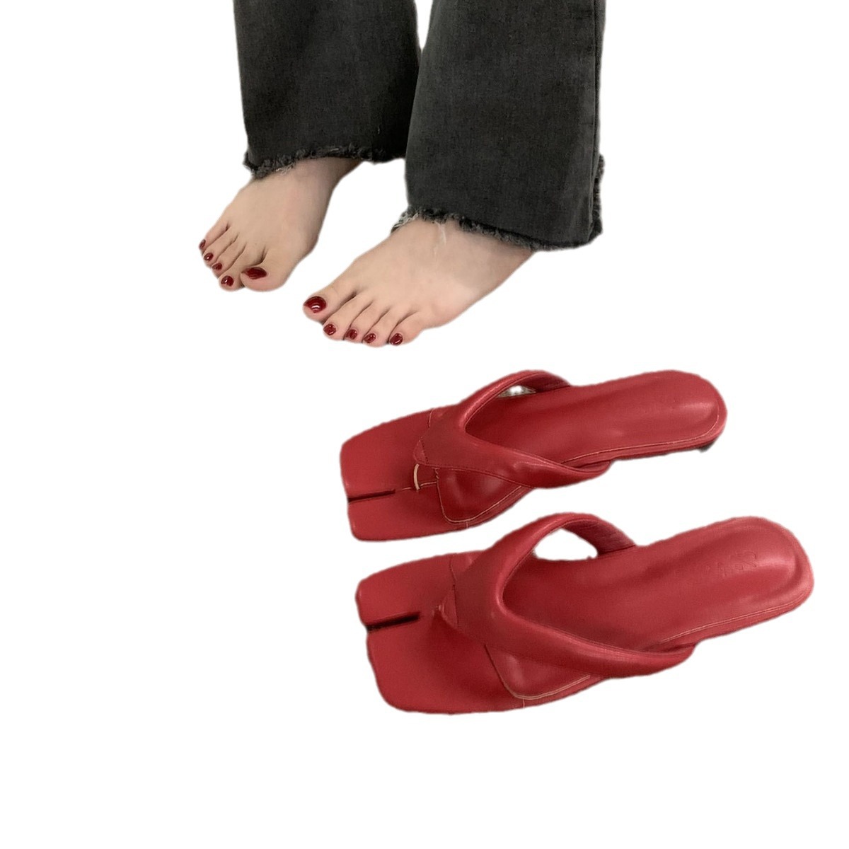 配裙绝美银色夹趾沙滩拖鞋女夏外穿新款平底人字拖猪蹄凉拖鞋