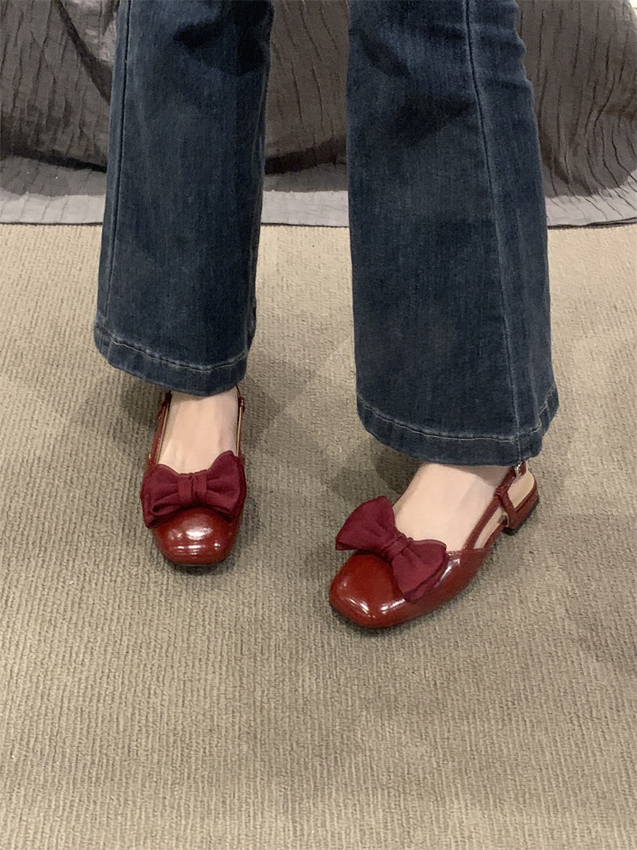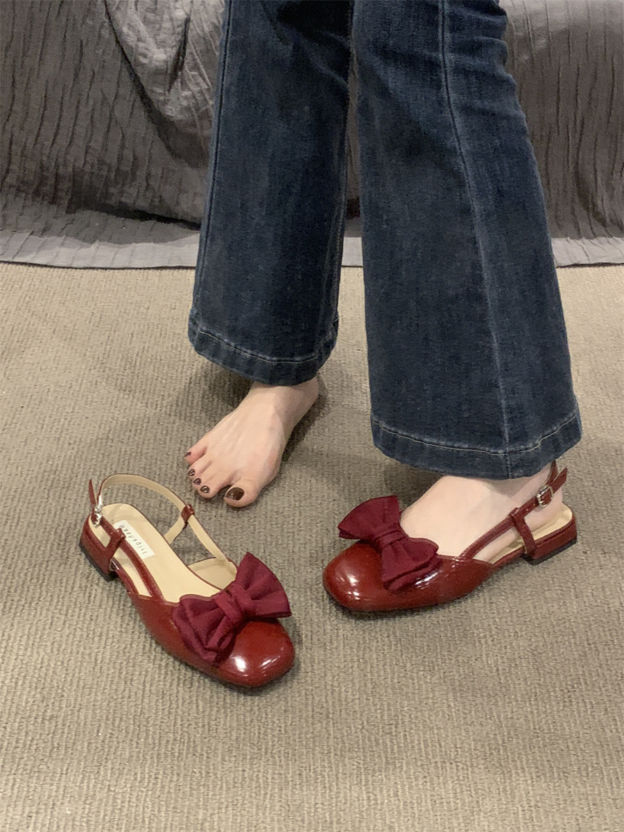 仙女风凉鞋配裙子女鞋子春夏新款粗跟蝴蝶结浅口法式凉单鞋