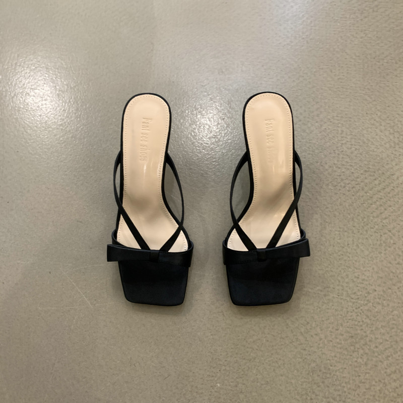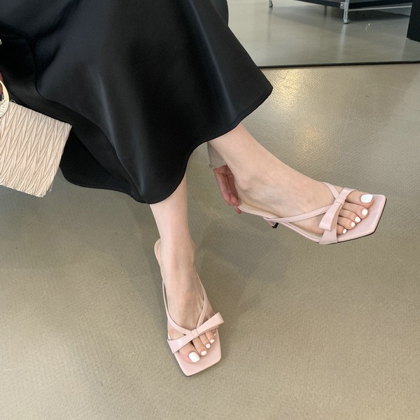 仙女风法式猫跟凉拖外穿夏季一字带蝴蝶结方头细跟优雅高跟拖鞋女