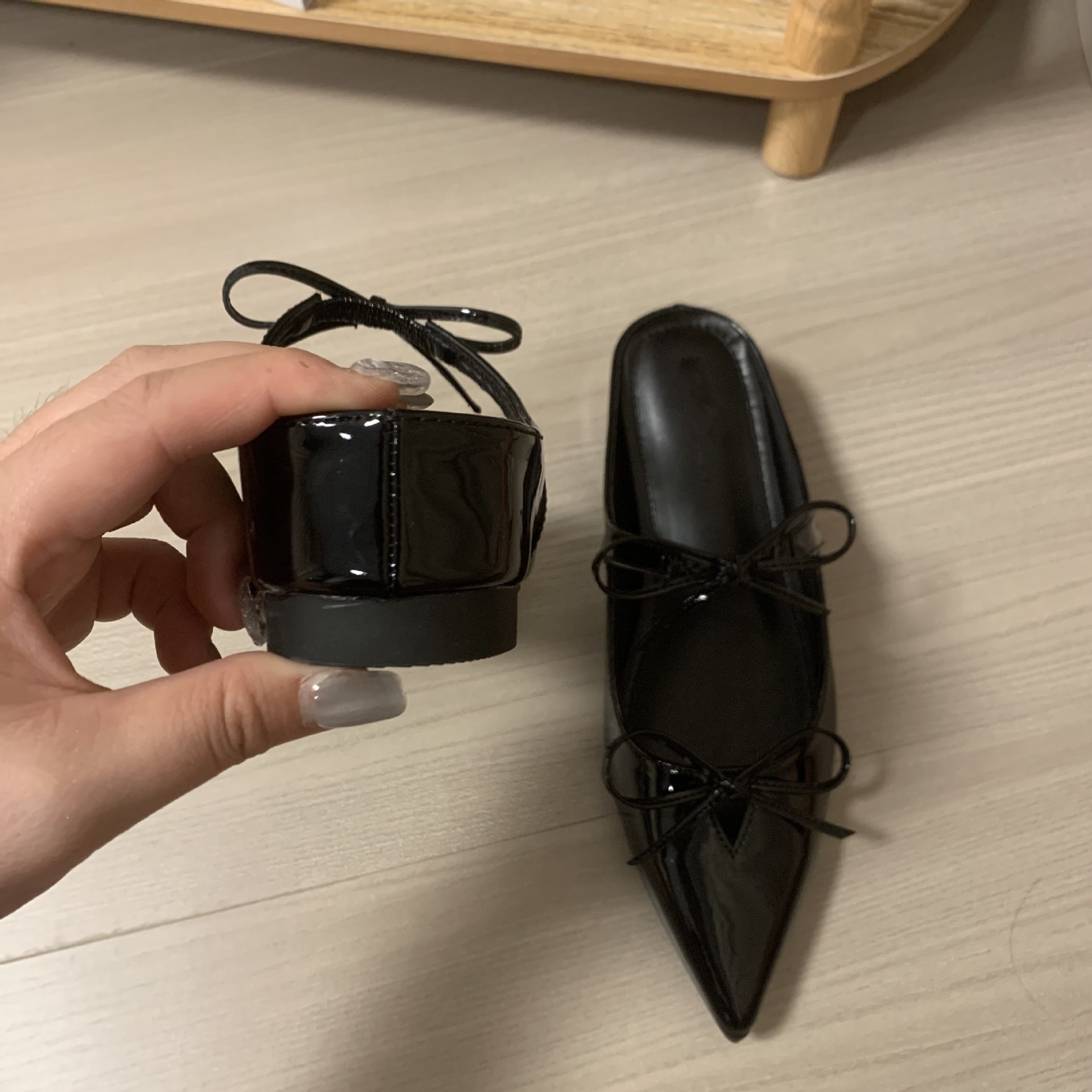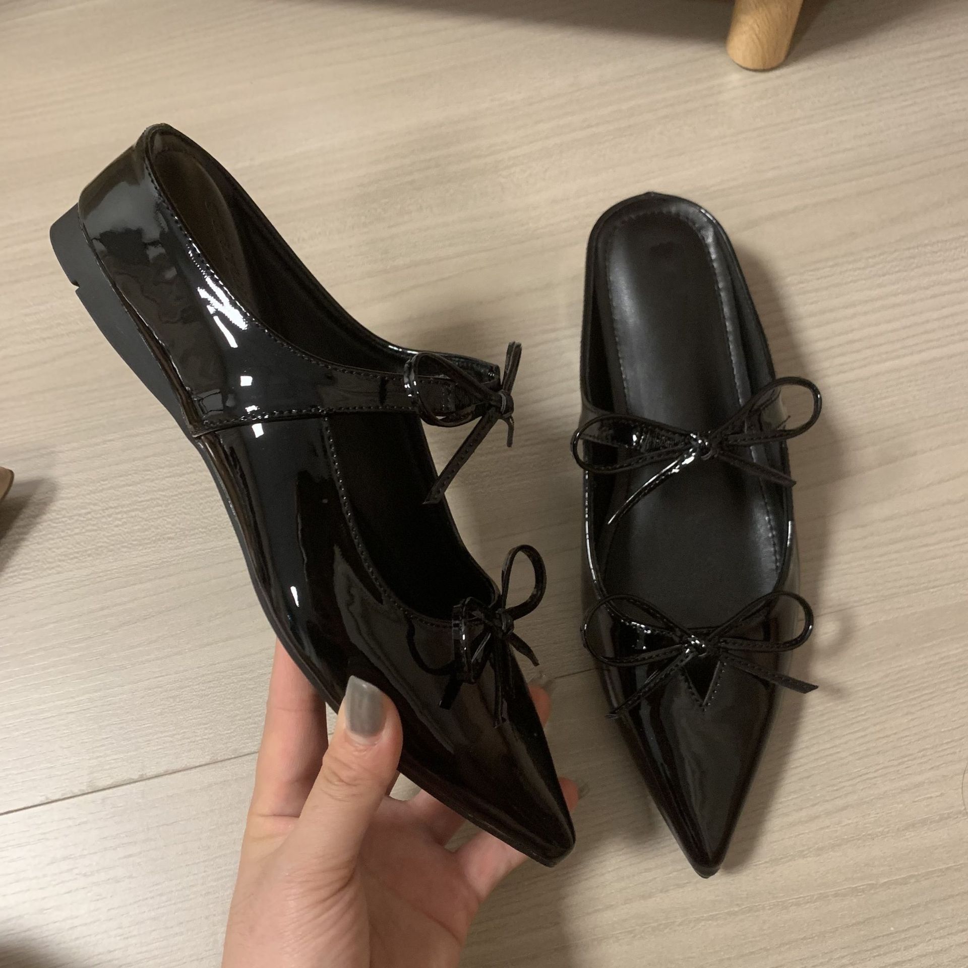双蝴蝶结半拖款内增高5cm小个子玛丽珍单鞋尖头漆皮半拖时尚百搭