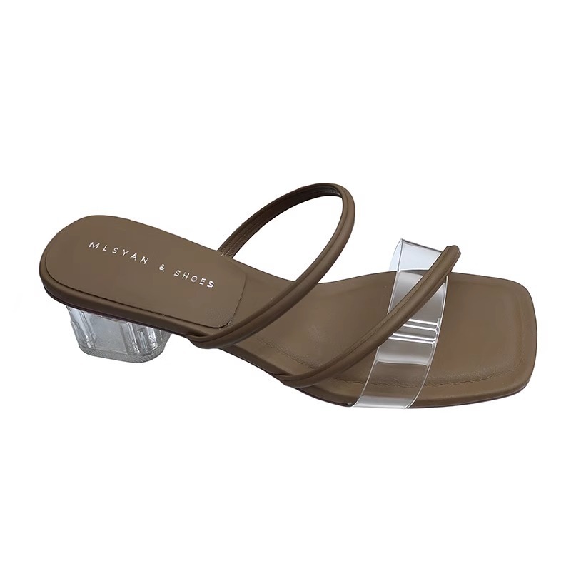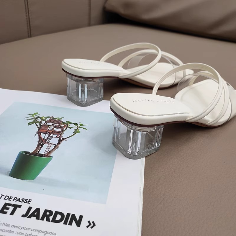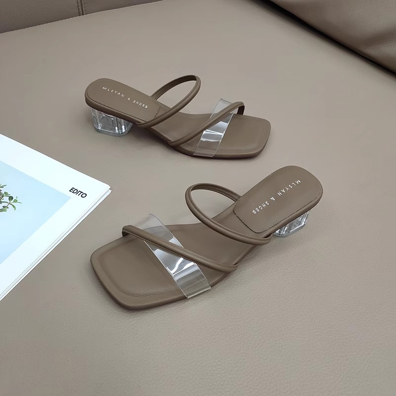 水晶拖鞋女夏外穿凉拖鞋仙女温柔风方头露趾凉鞋透明带粗跟高跟鞋