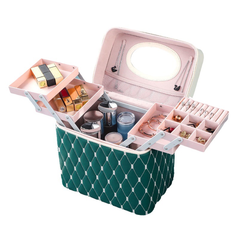 网红便携式化妆品收纳盒大容量手提箱高级美甲纹绣箱子
