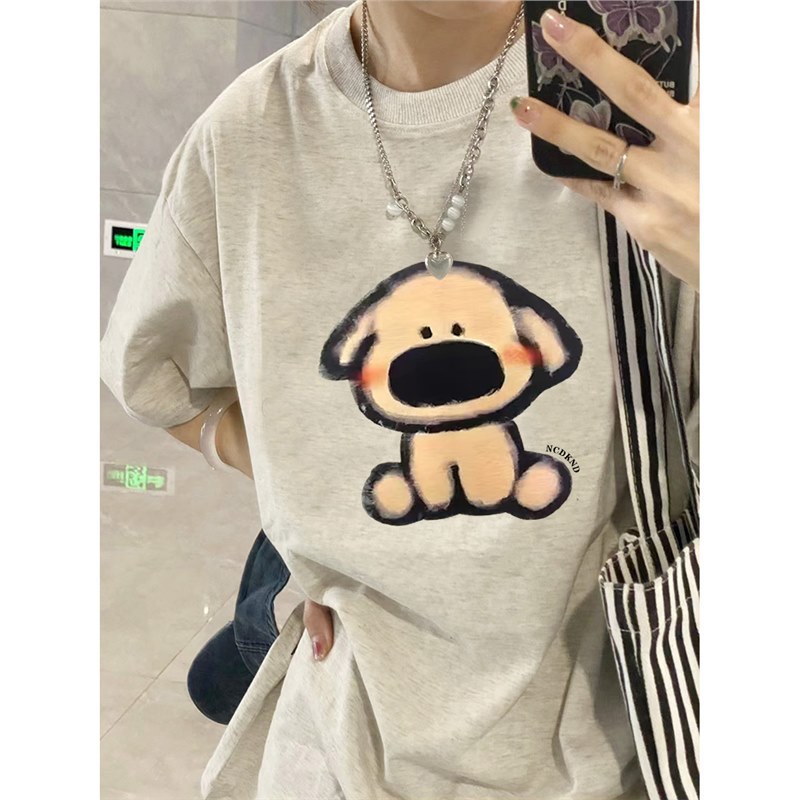 灰色短袖t恤女新款夏季设计感小众美式宽松半袖大码上衣情侣