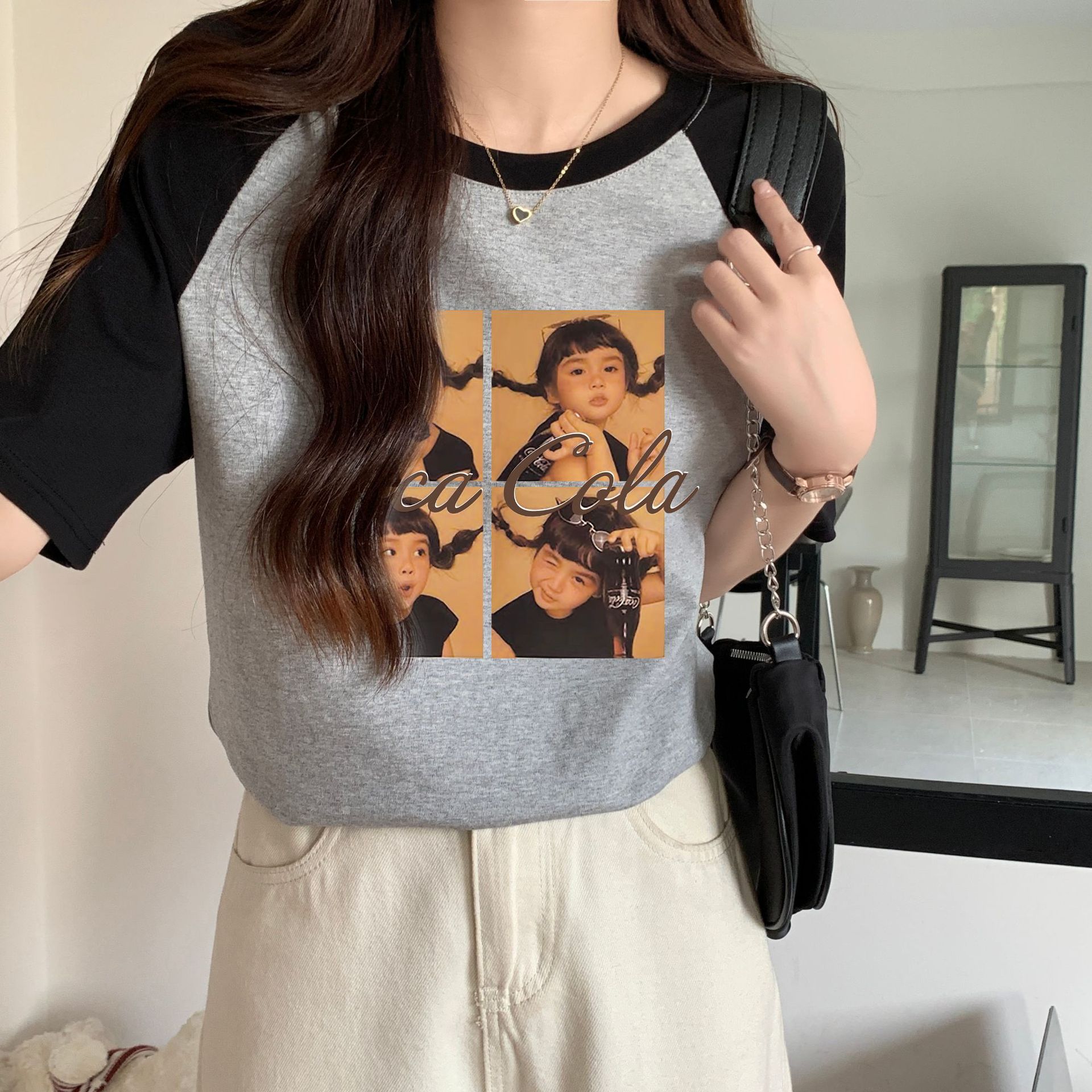 美式复古插肩袖t恤女短袖夏季设计感小个子宽松体恤上衣