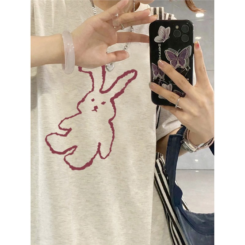 大码纯棉灰色短袖t恤女新款夏季设计感小众美式宽松半袖上衣