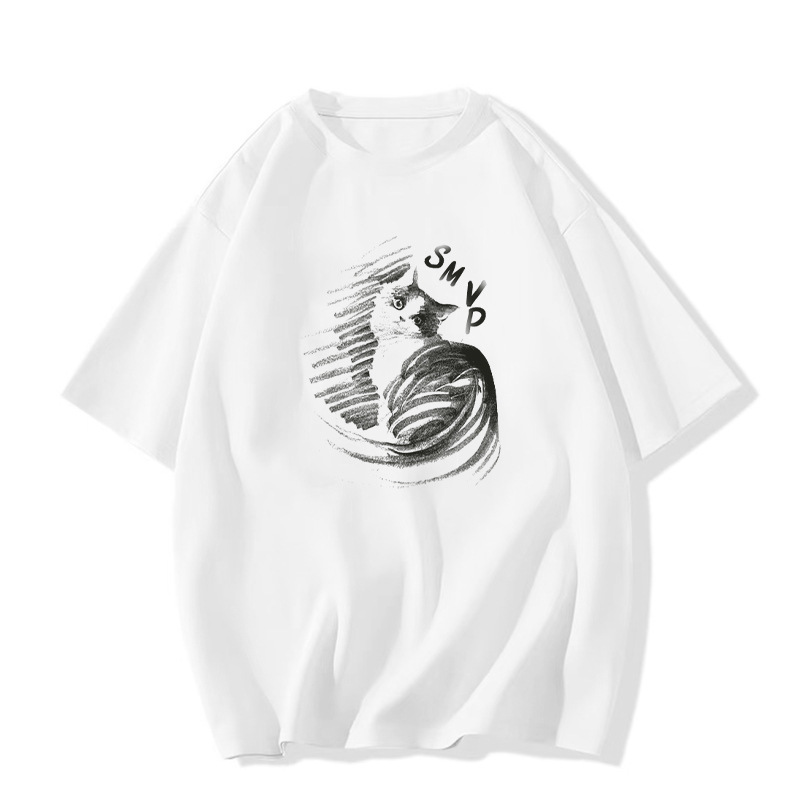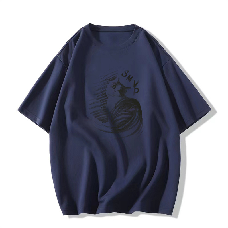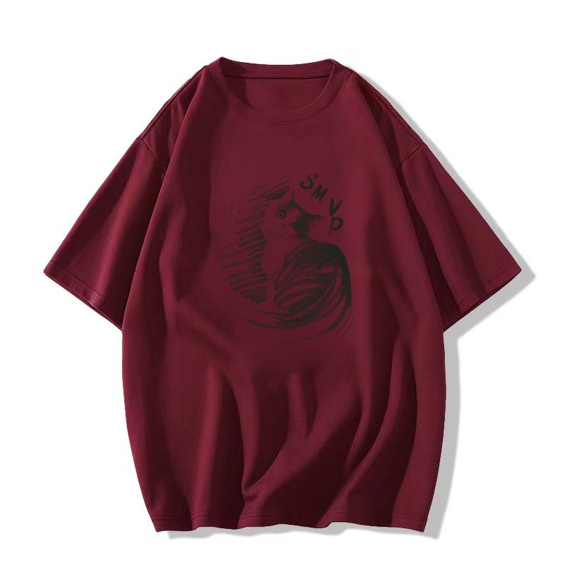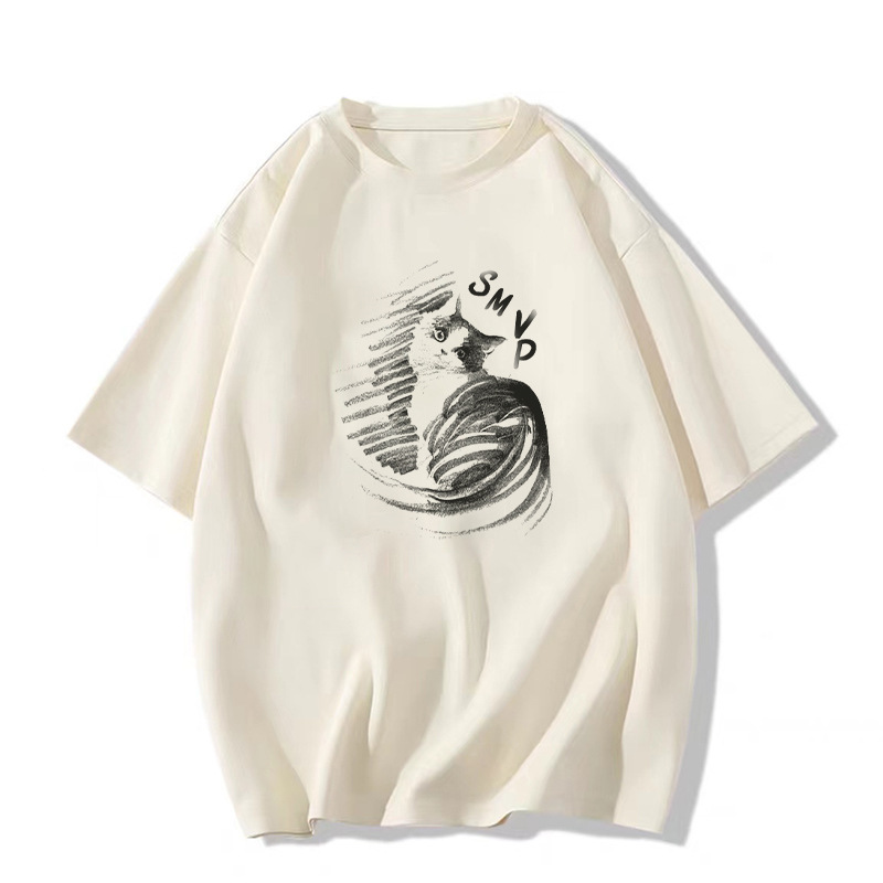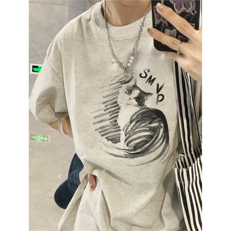 纯棉大码短袖t恤女新款夏季灰色设计感小众美式宽松半袖上衣