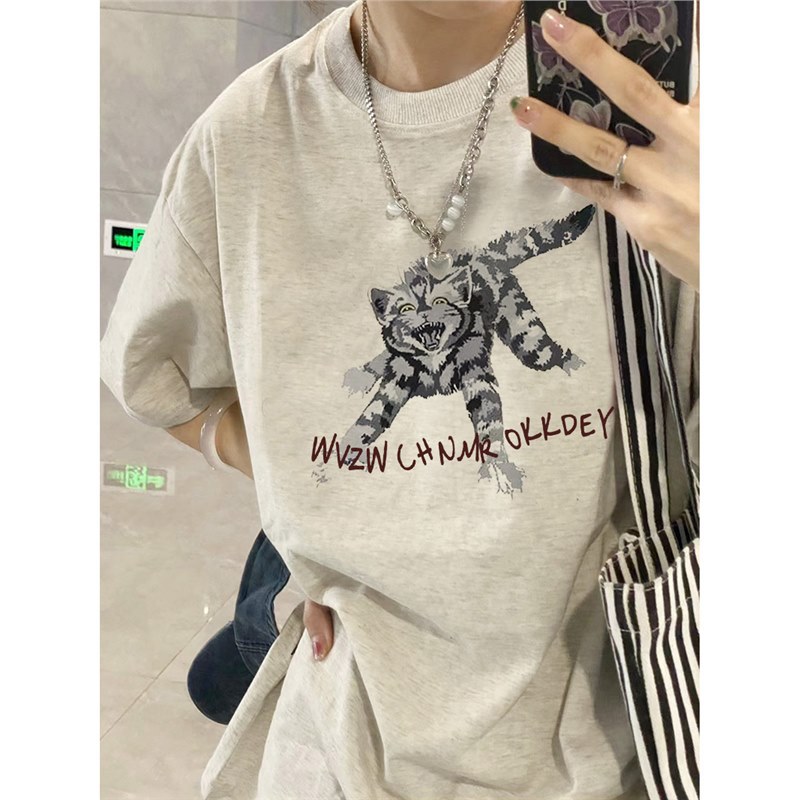 夏季纯棉短袖t恤女新款爆款设计感小众美式宽松上衣情侣装