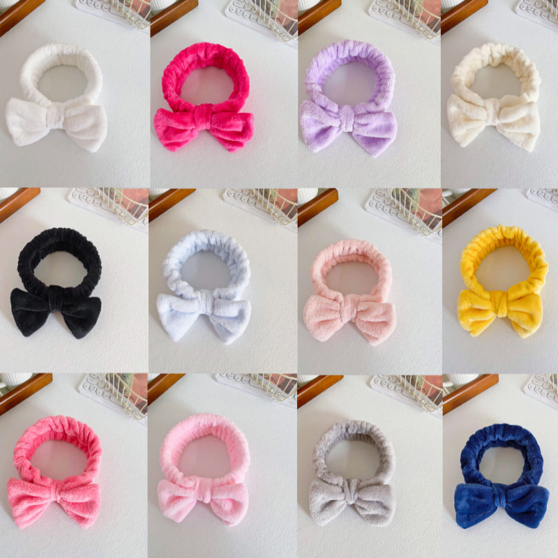 简约韩系纯色蝴蝶结束发带头饰女洗脸SPA可爱发饰法兰绒头巾发箍