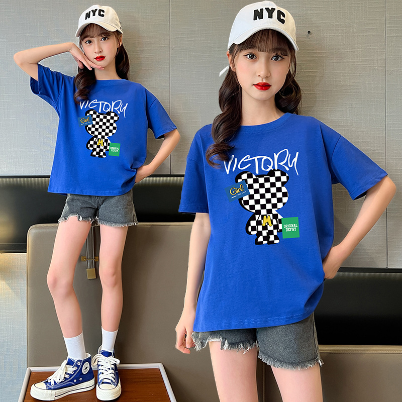 女童纯棉短袖夏季洋气半袖t儿童t恤女孩宽松卡通印花上衣中童装潮