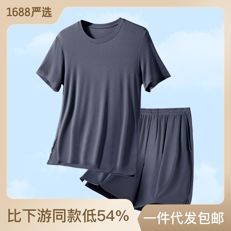 兰精莫代尔男士睡衣无痕短袖冬季透气舒适可外穿家居服套装男