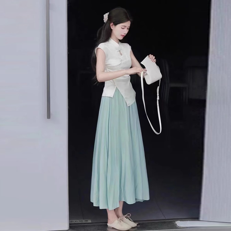 夏日穿搭洋气时尚高级感通勤韩版显瘦新中式国风半身裙两件套装女