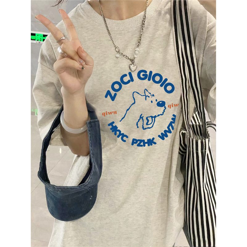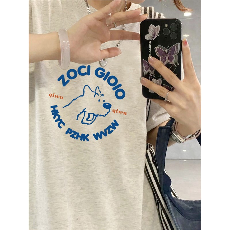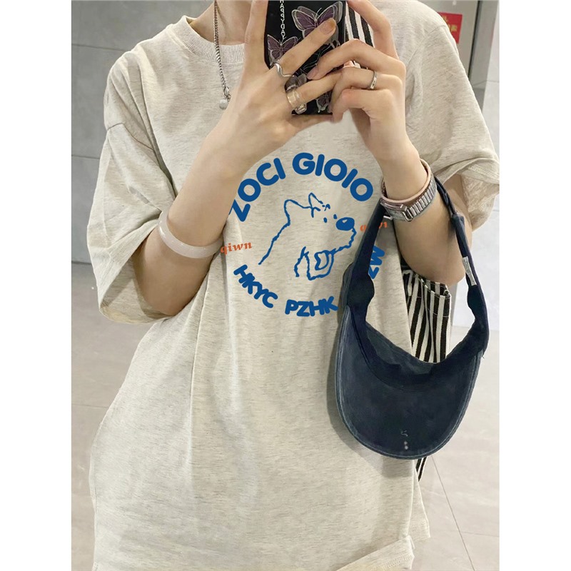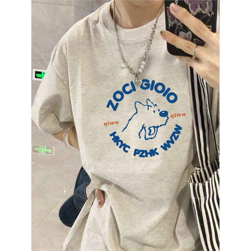 纯棉情侣短袖t恤女新款夏季设计感小众美式灰色宽松半袖上衣