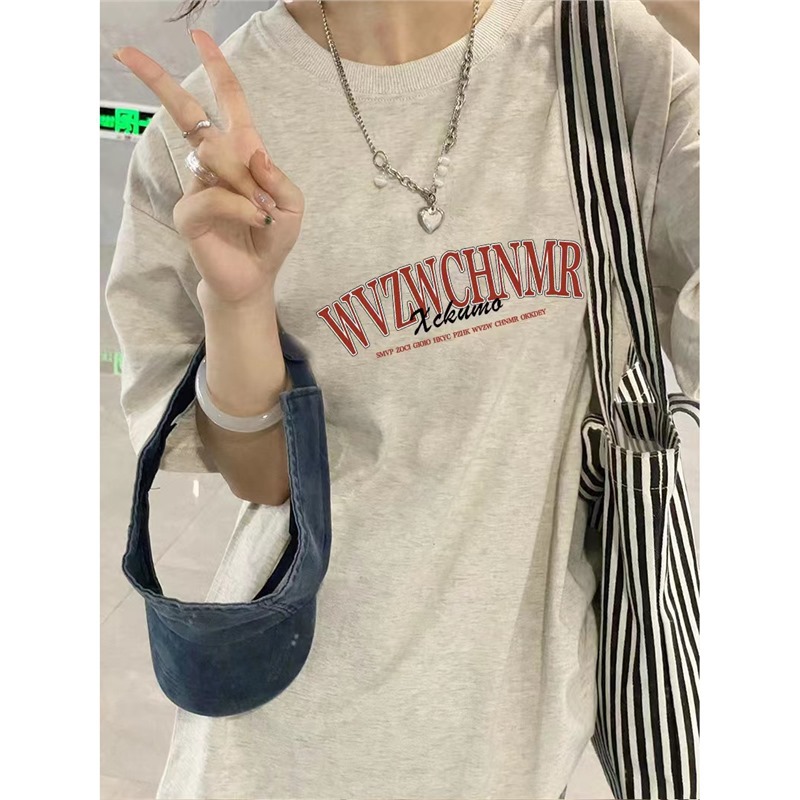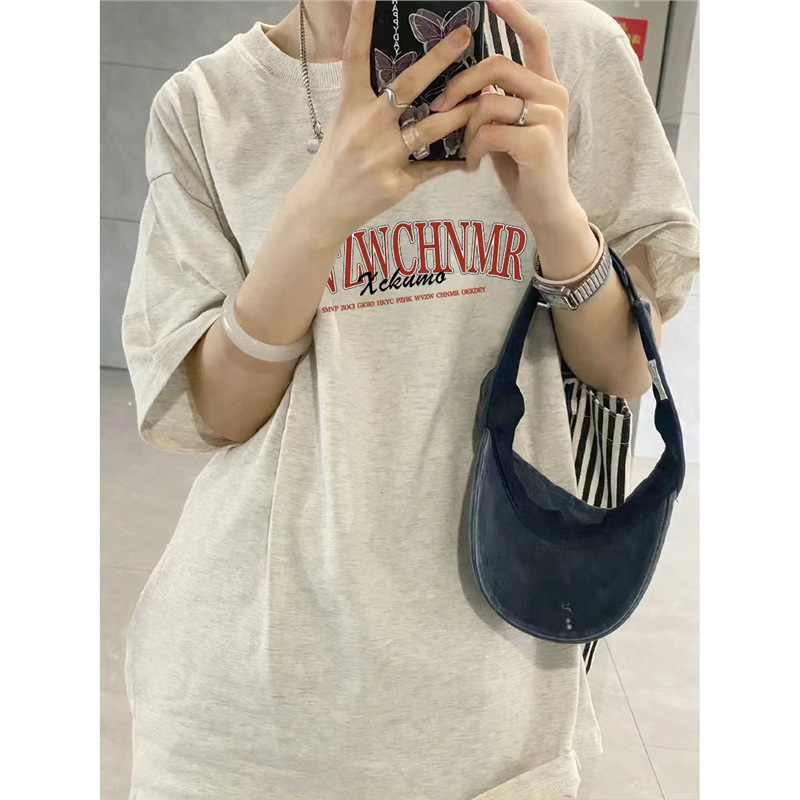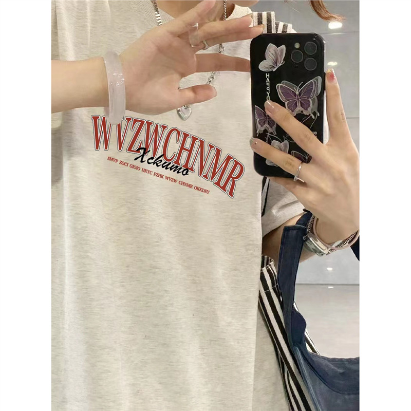 200斤纯棉灰色短袖t恤女新款夏季设计感小众美式宽松半袖上衣