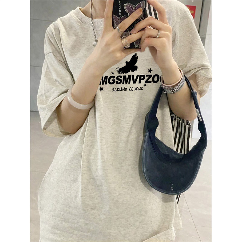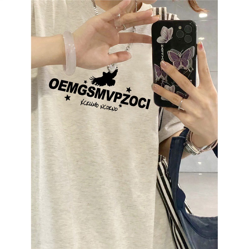 200斤夏季纯棉短袖t恤女新款爆款设计感小众美式宽松半袖上衣