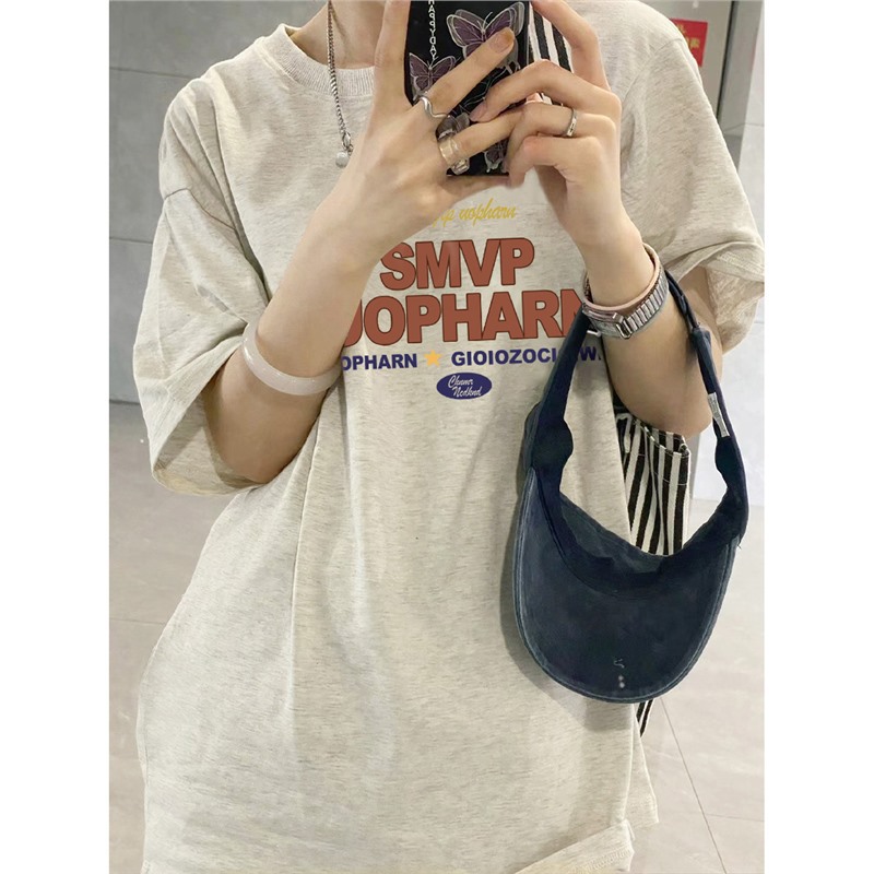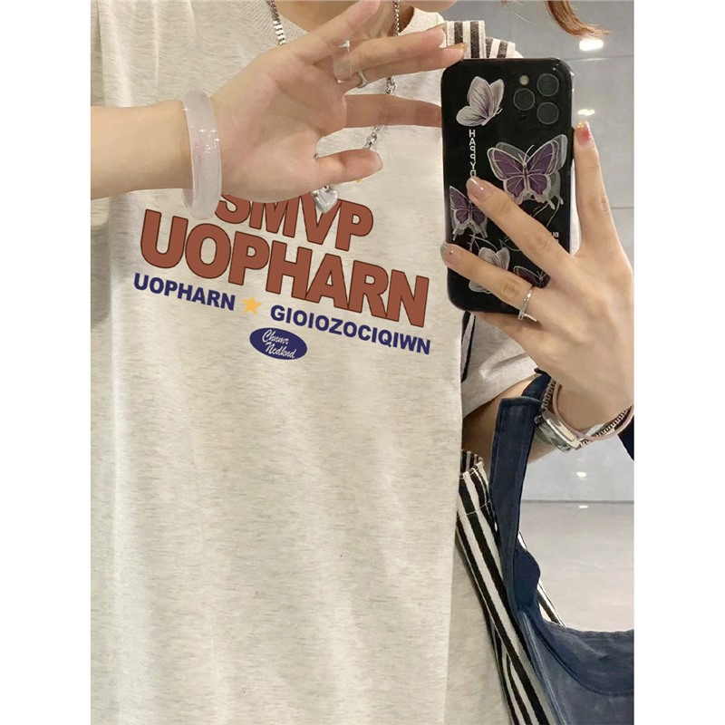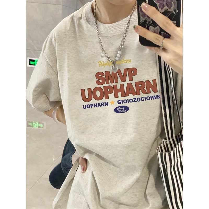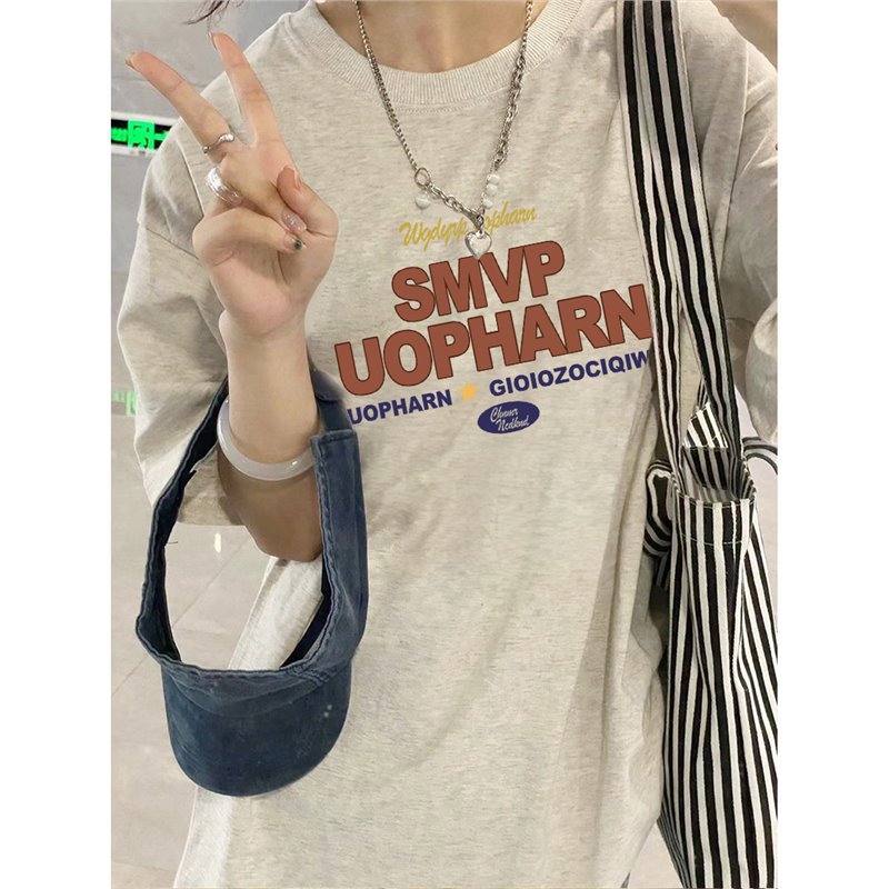200斤夏季纯棉短袖t恤女新款爆款设计感小众美式宽松半袖上衣