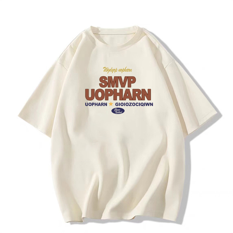 A04#(240克潮牌双纱32支纯棉)有缝落肩短袖T恤跨境TEMU希音