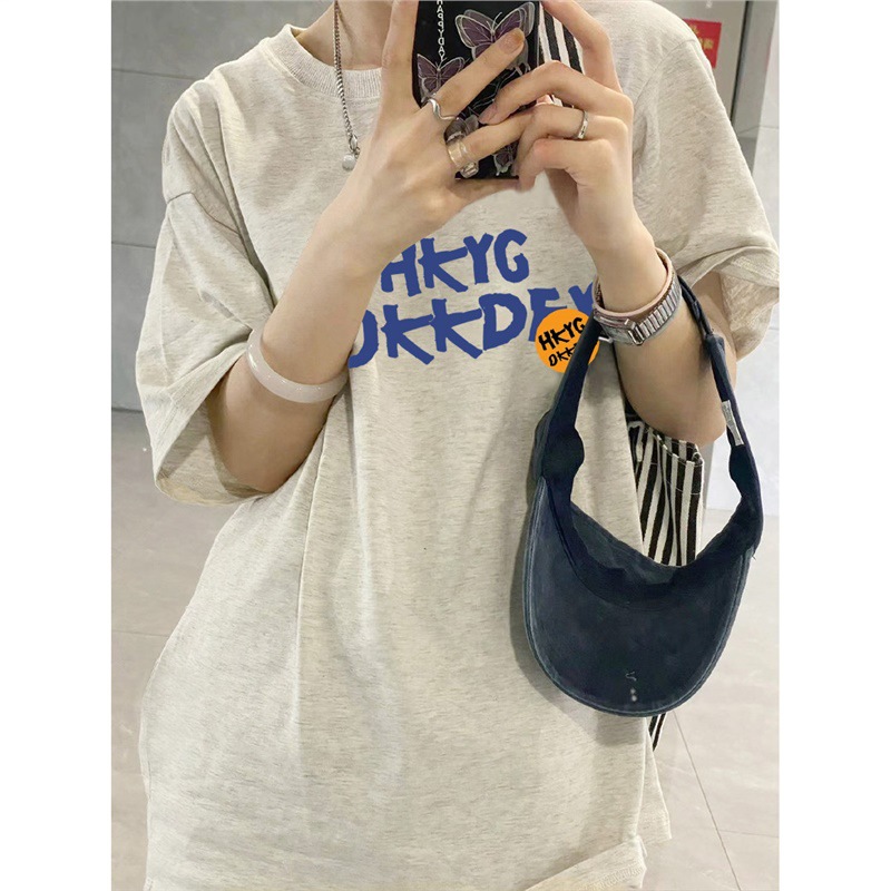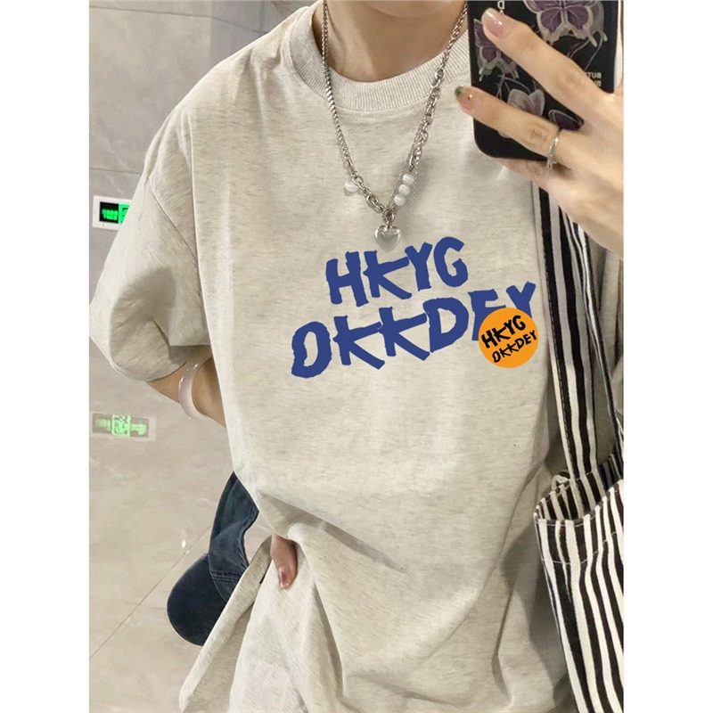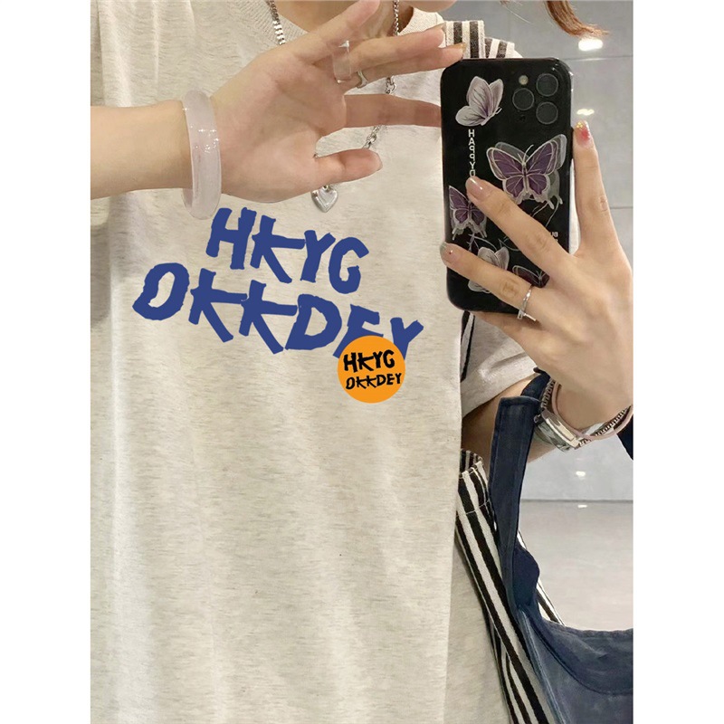 纯棉200斤灰色短袖t恤女新款夏季设计感小众美式宽松半袖上衣