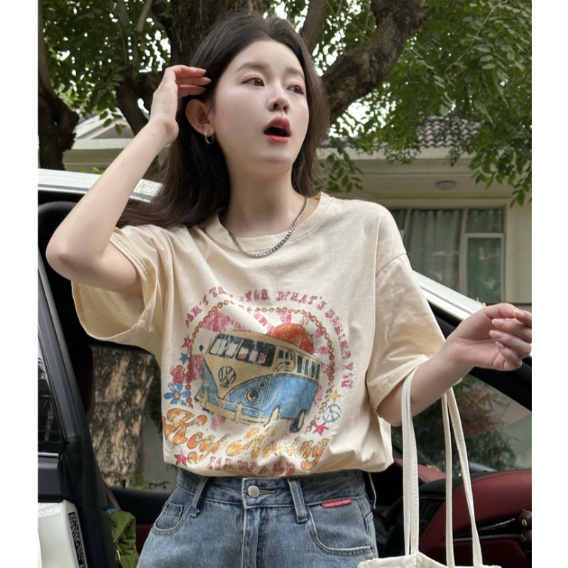 设计感卡通印花正肩短袖t恤女夏季小众宽松显瘦半袖港味chic上衣
