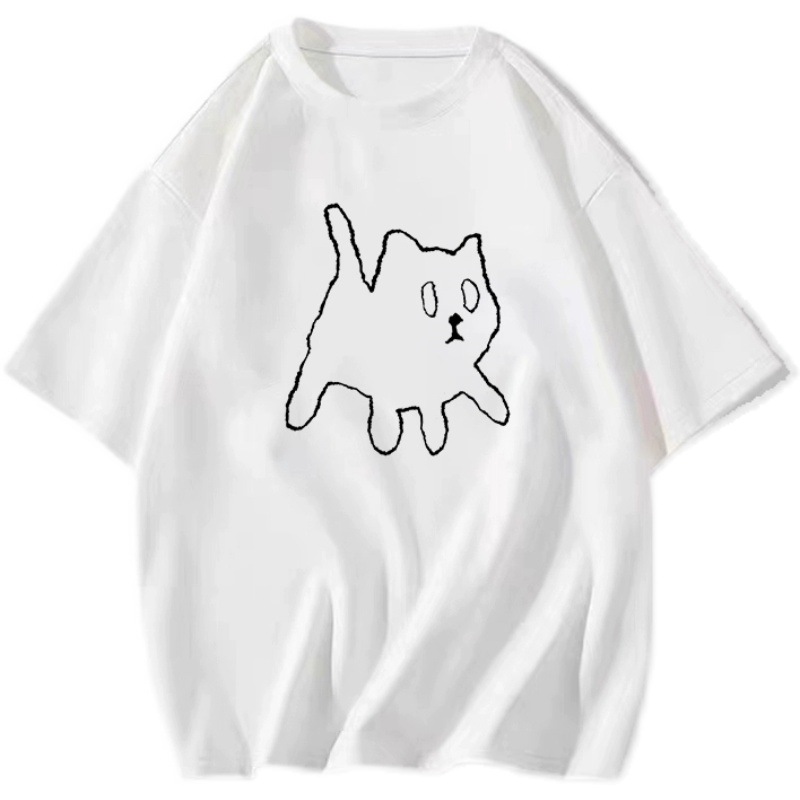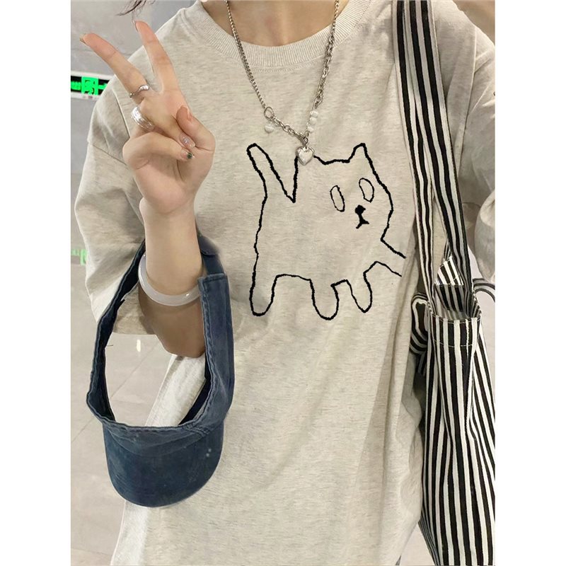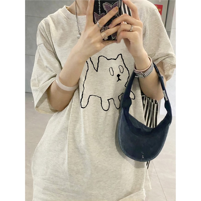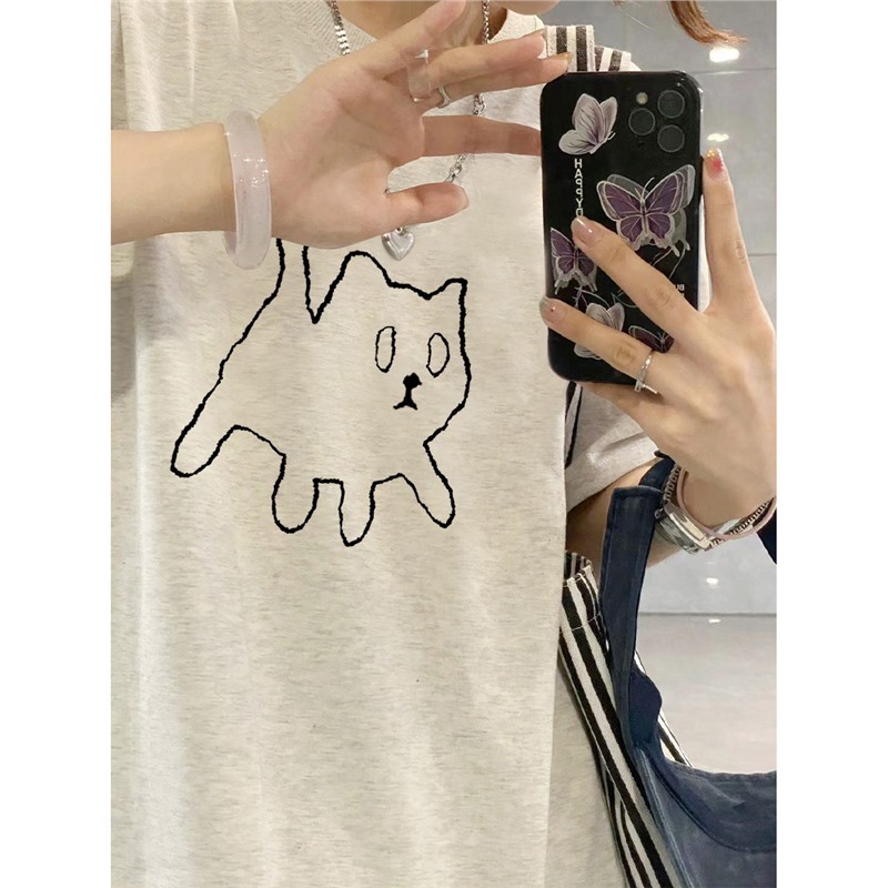 200斤纯棉灰色短袖t恤女新款夏季设计感小众美式宽松半袖上衣
