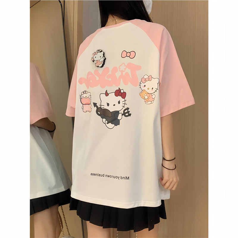 200斤纯棉粉色插肩短袖t恤闺蜜装夏季女大学生多巴胺宽松显瘦上衣