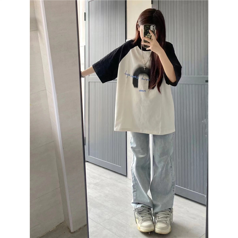 欧货大版2025夏季涂鸦印花短袖T恤女宽松小众时尚百搭潮牌上衣ins