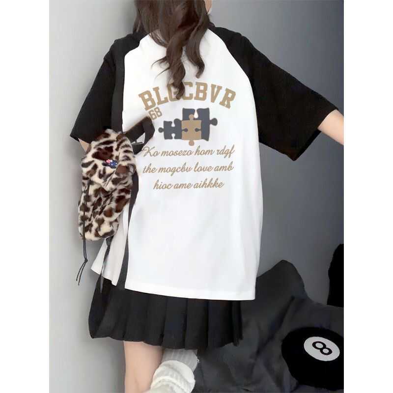纯棉插肩短袖t恤新款宽松上衣闺蜜装夏季多巴胺宽松显瘦上衣
