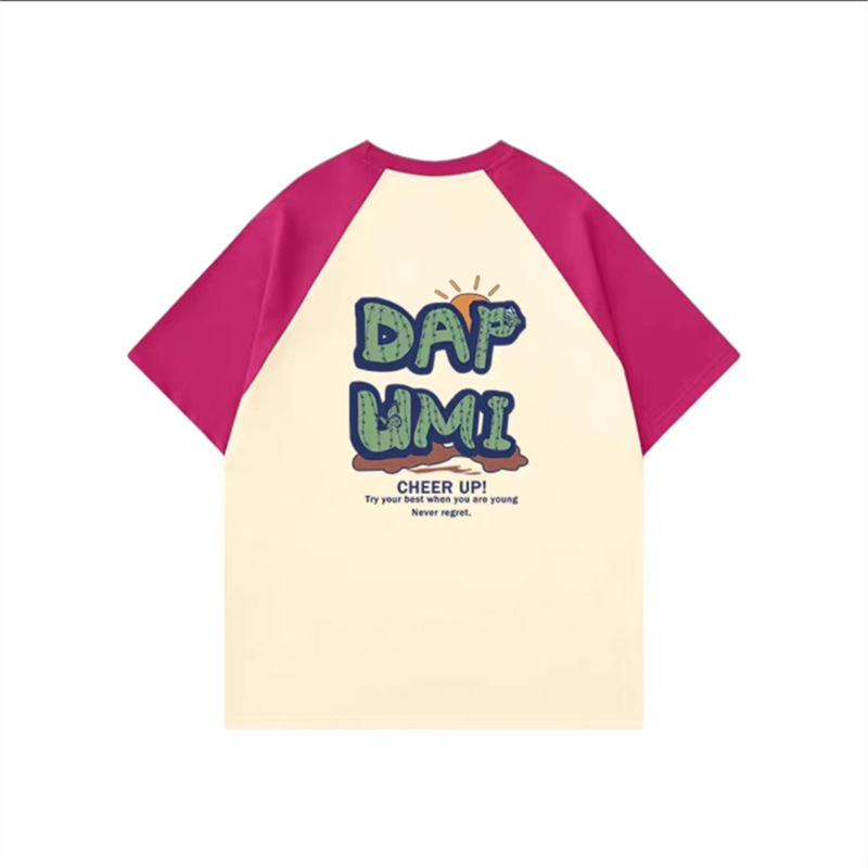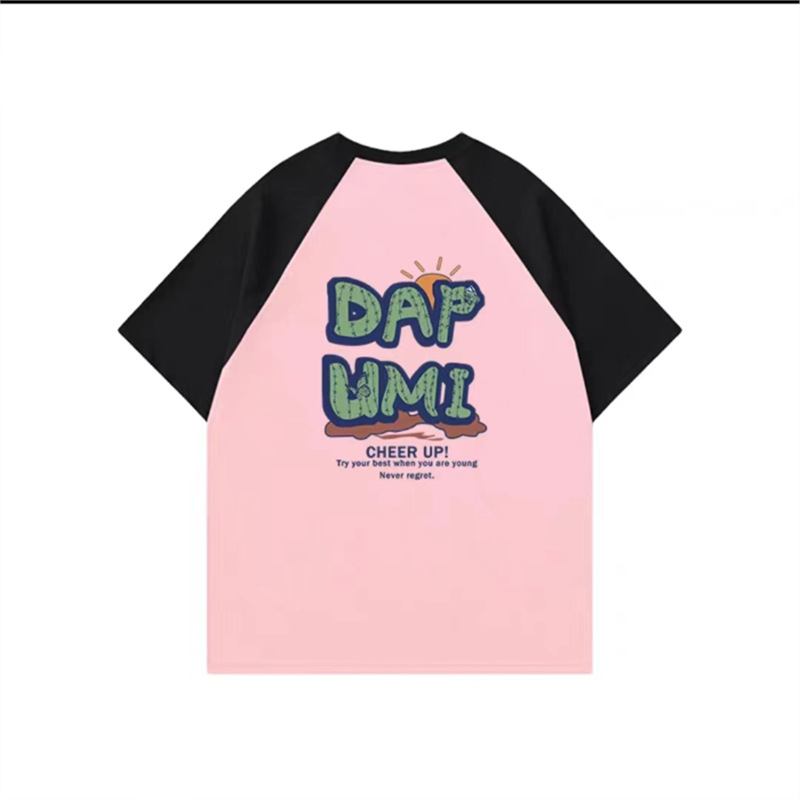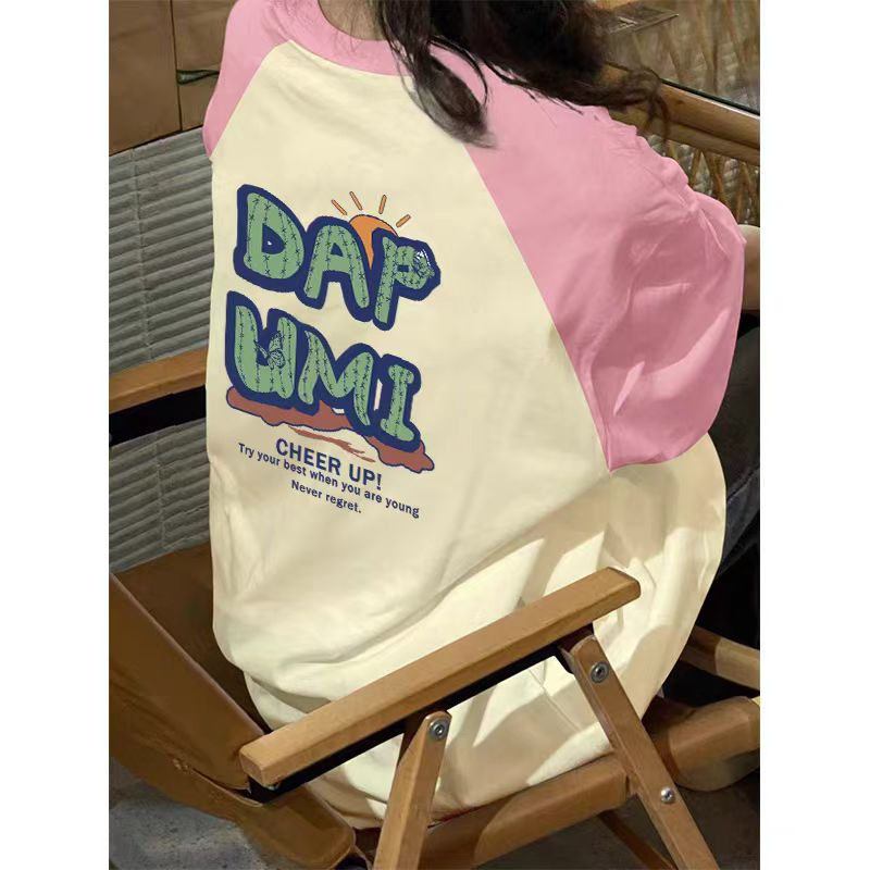 大码纯棉插肩短袖t恤美式vintag小众设计感女夏季胖mm宽松上衣潮