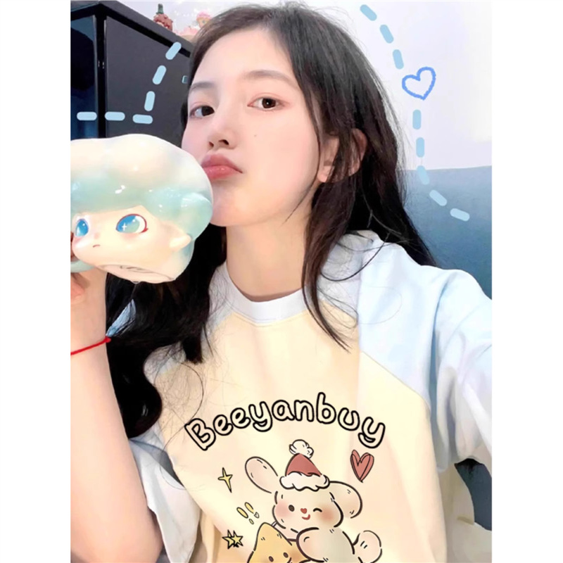 200斤纯棉大码美式vintag插肩短袖t恤女夏季宽松胖mm复古半袖上衣