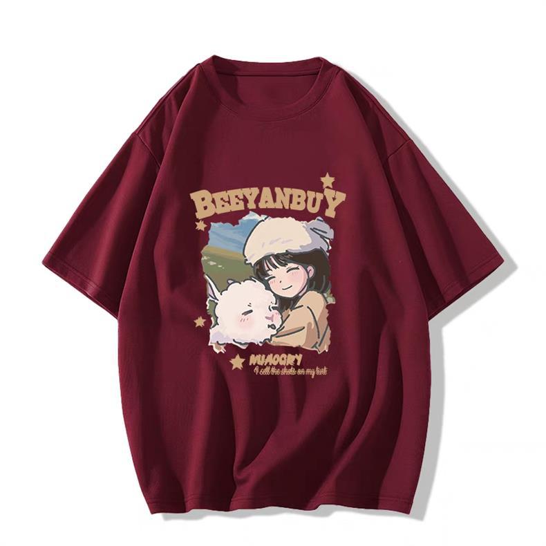 大码纯棉美式复古短袖t恤女夏季oversize小众设计感潮牌宽松上衣