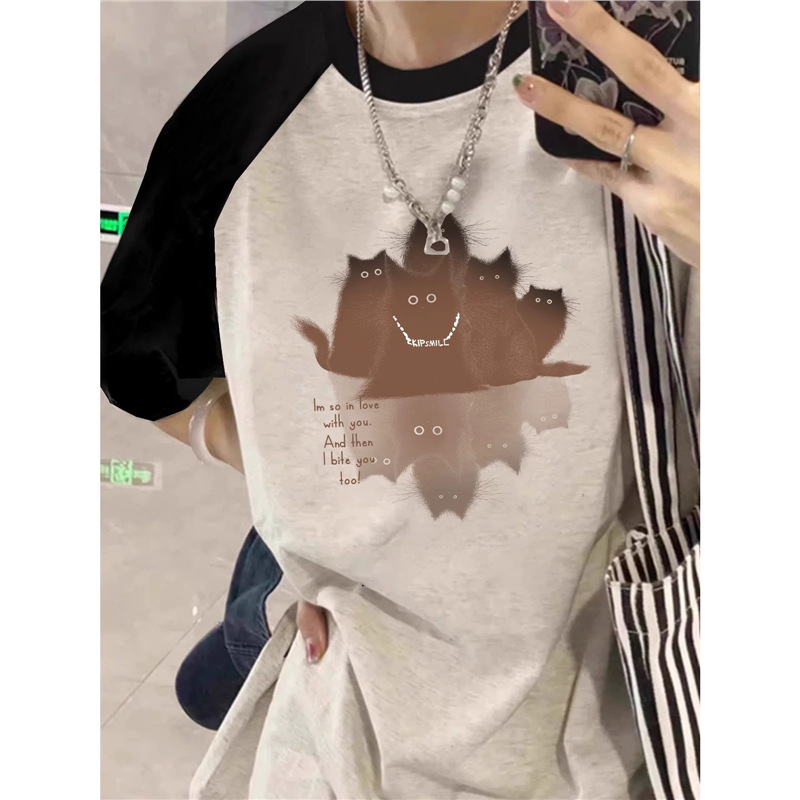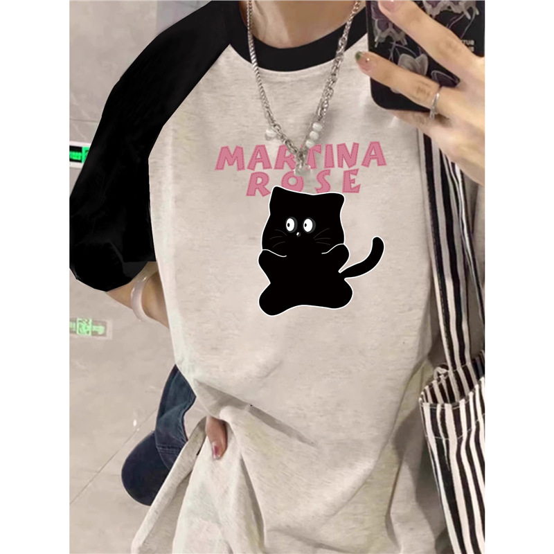 200斤大码美式vintage高级感插肩纯棉短袖t恤女夏季胖mm潮牌上衣