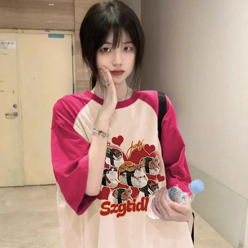 胖妹妹mm纯棉插肩短袖t恤女夏季宽松200斤大码设计感小众洋气上衣