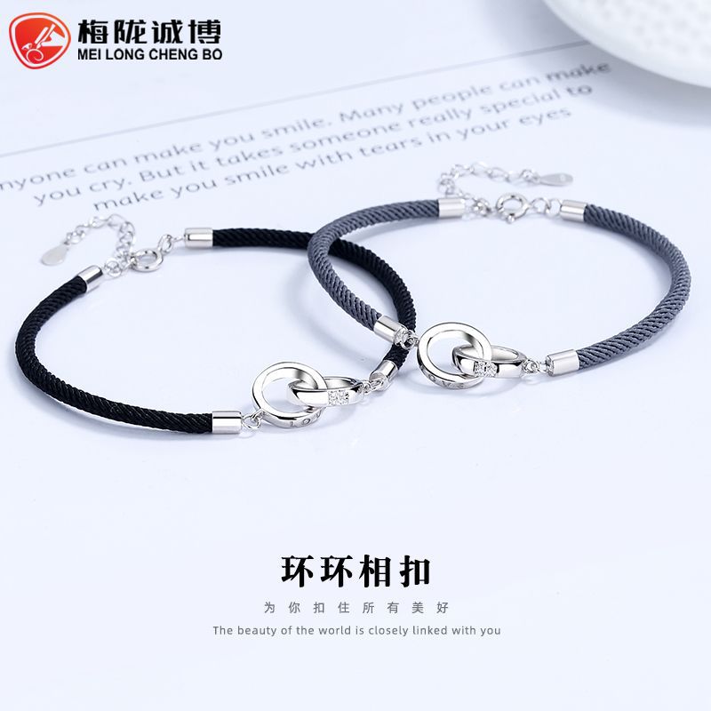 s925纯银LOVE环环相扣情侣手链男女生一对手工编织手绳饰品情人节