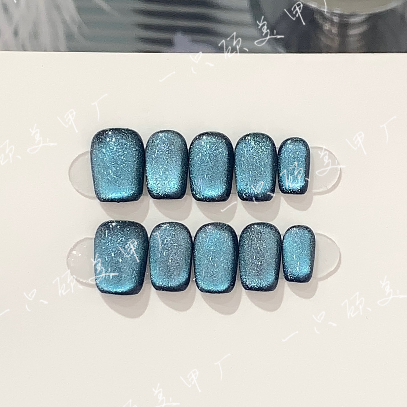 一只顾美甲厂【原创实拍】手工猫眼美甲纯黑打底蓝精灵猫眼海盐冰
