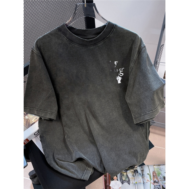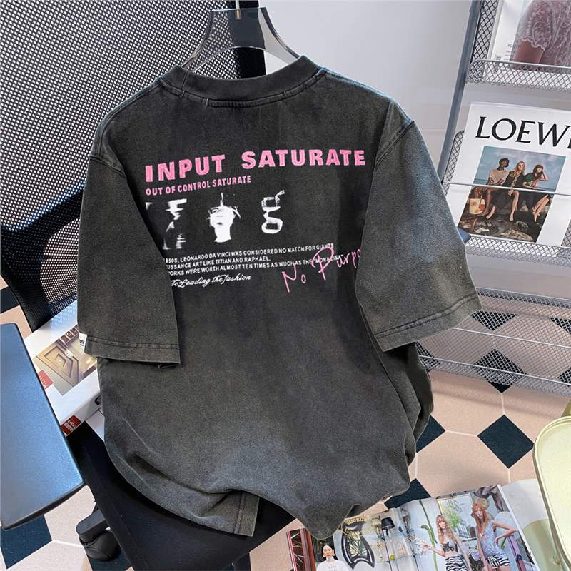 美式复古水洗做旧印花短袖男t恤女夏季纯棉高街潮牌ins情侣上衣