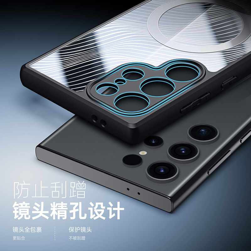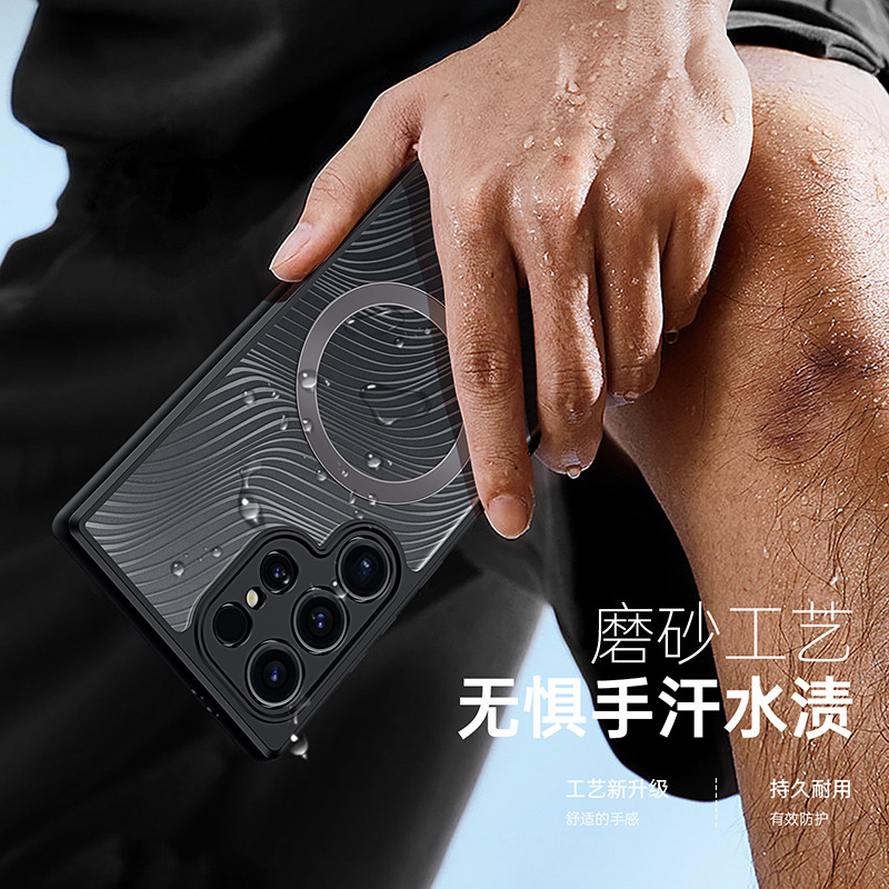 适用三星S24Ultra磁吸支架手机壳防变色 S24Plus磨砂透明后壳
