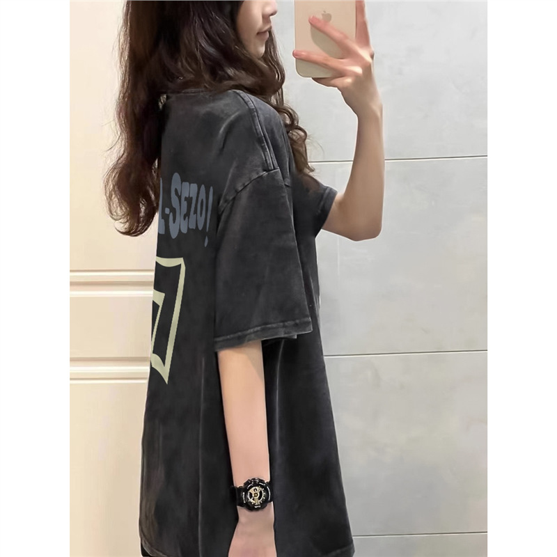 水洗做旧重磅纯棉短袖t恤女夏季新款下衣失踪小个子宽松上衣