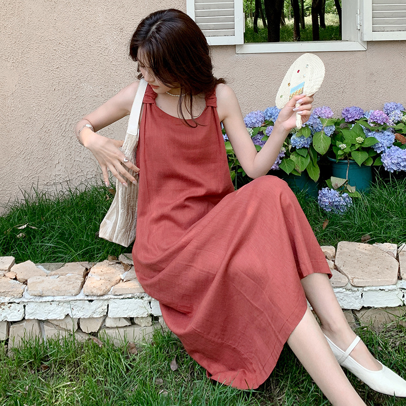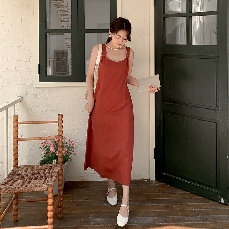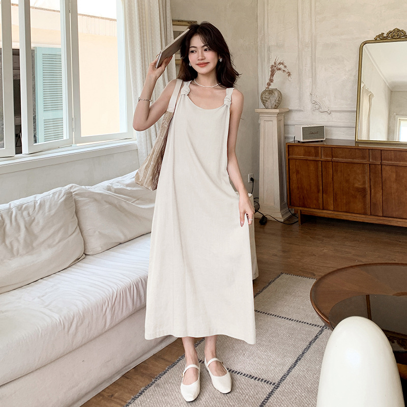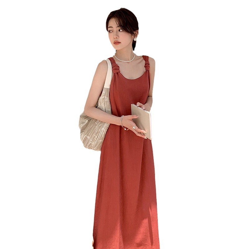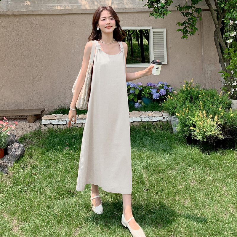 韩系纯色温柔风吊带连衣裙夏季新款气质仙女长款宽松休闲裙子