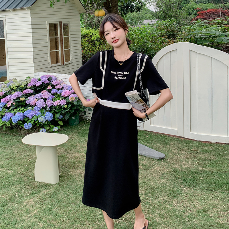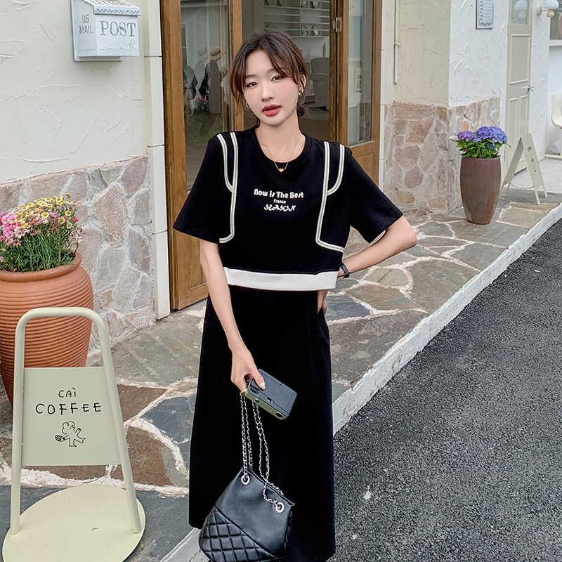 夏季新款休闲时尚假两件小香风气质连衣裙洋气小个子设计裙子