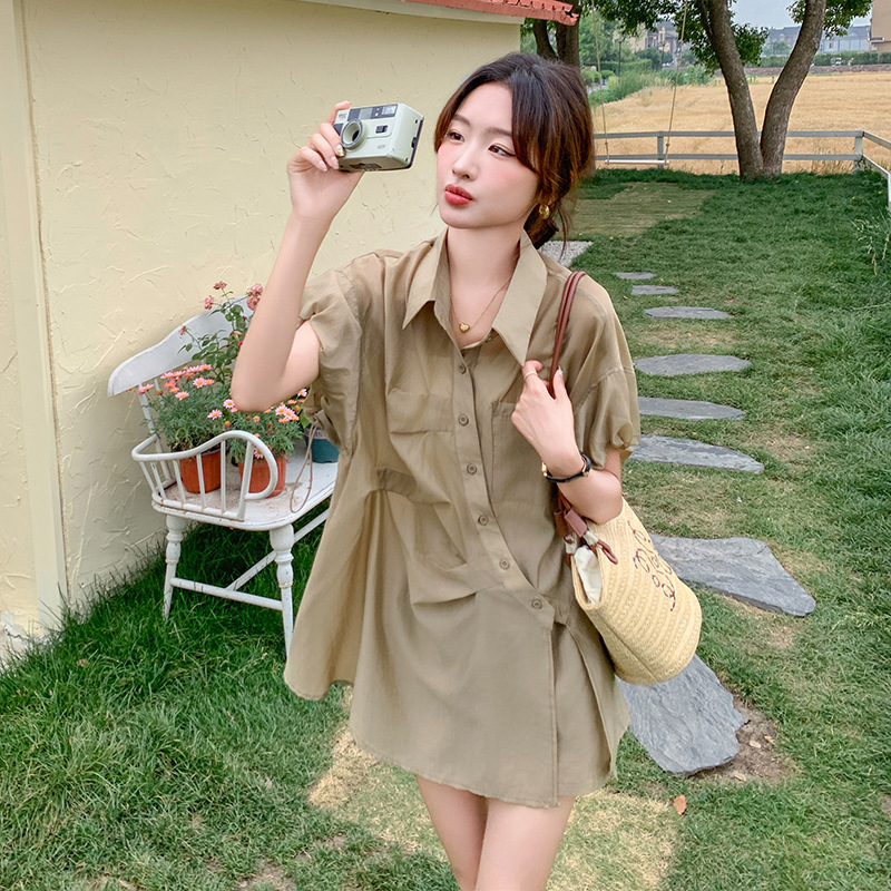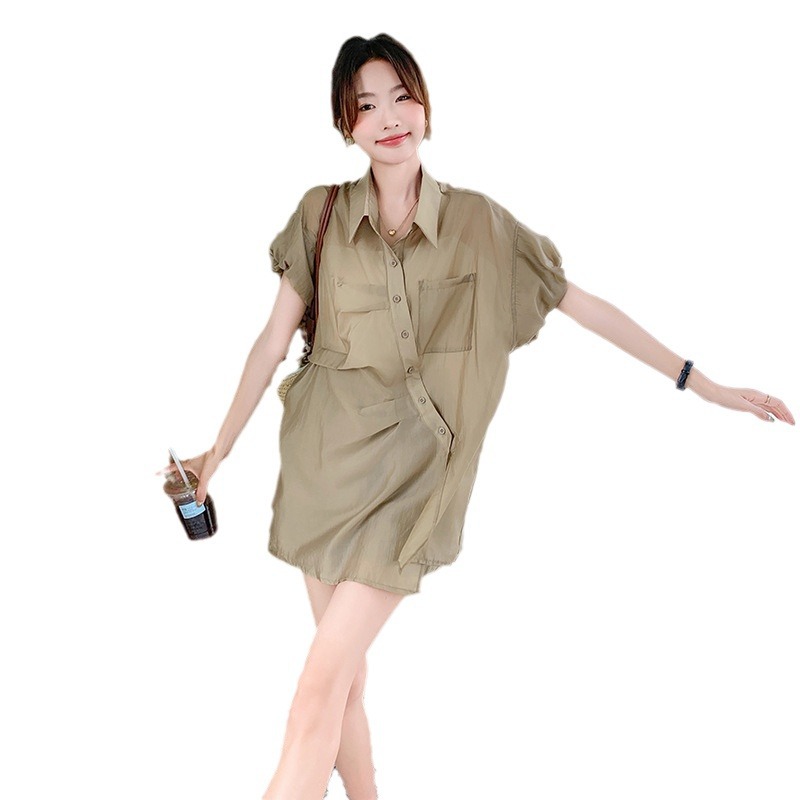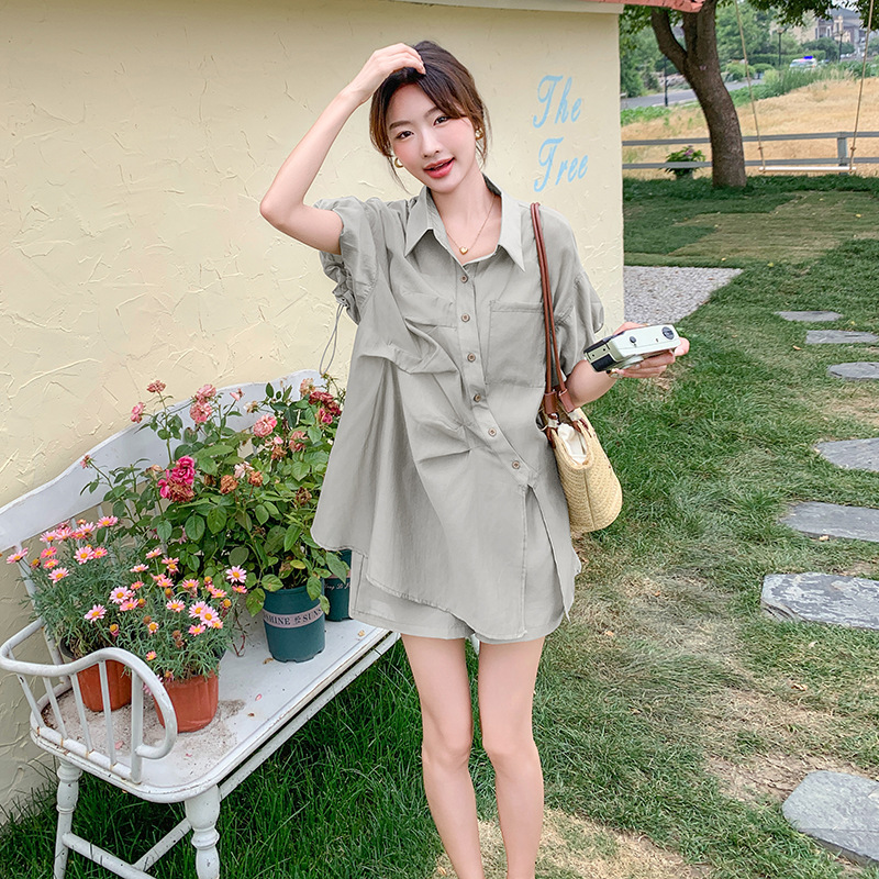 小众设计天丝上衣短裤两件套夏季休闲时尚衬衫裤子新款套装女