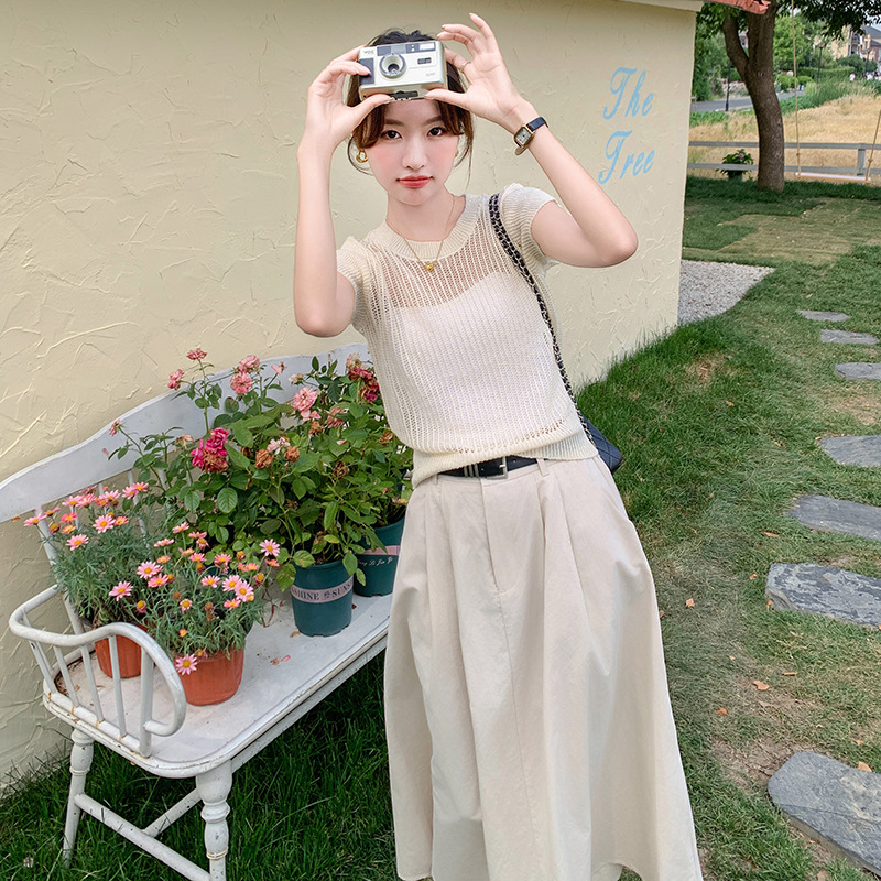 高级香风镂空上衣半身裙套装女夏季新款气质时尚显瘦两件套