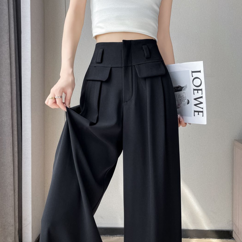 黑色冰丝西装裤女夏季薄款感垂感新款高腰直筒休闲阔腿裤